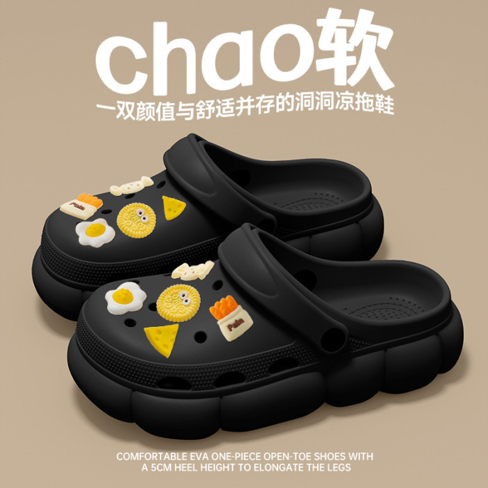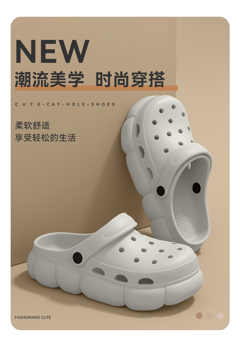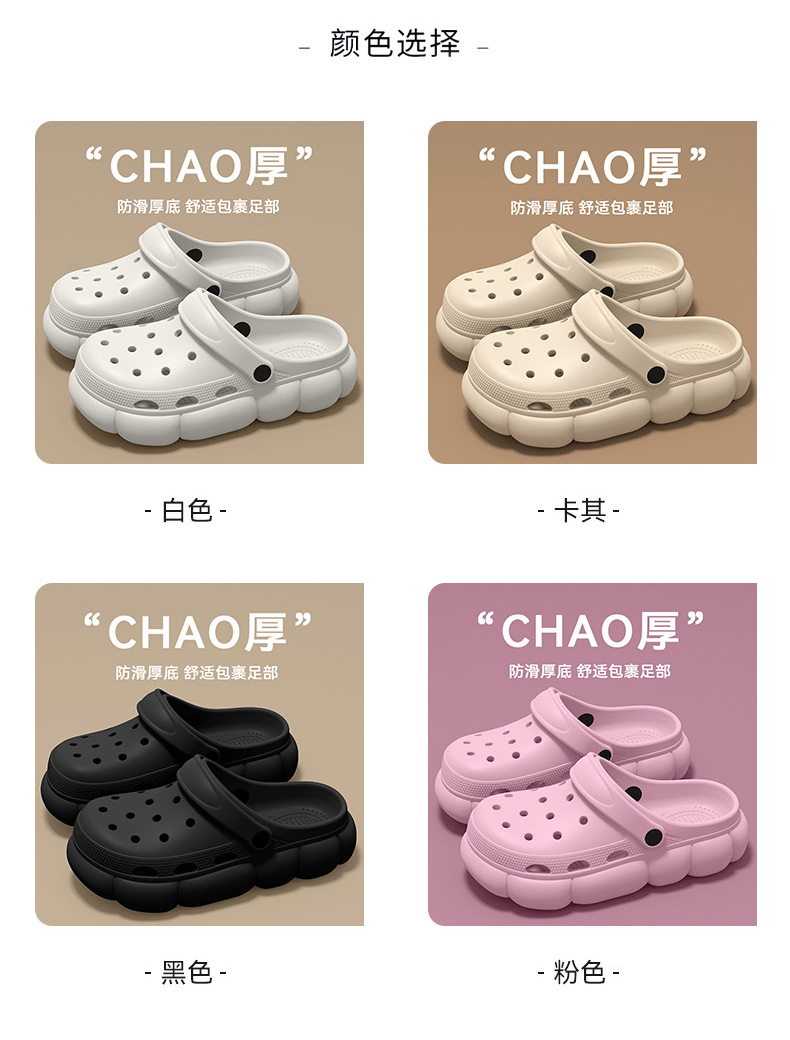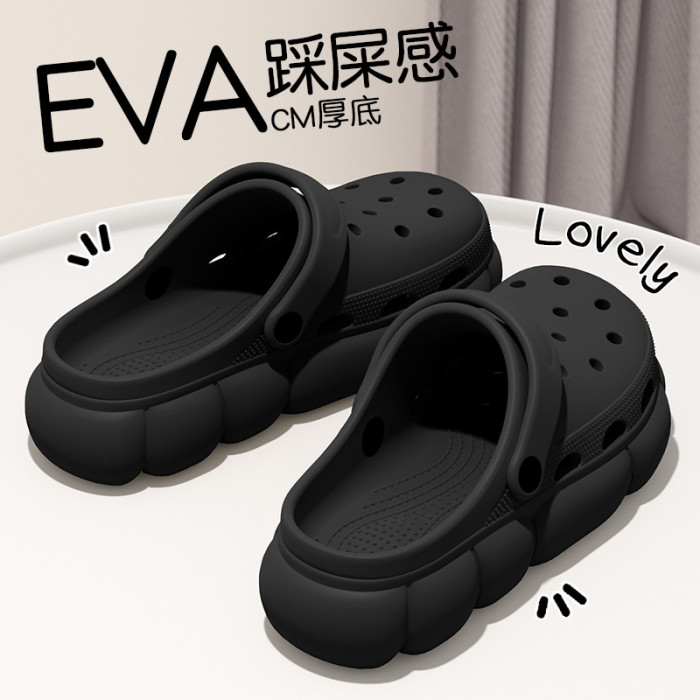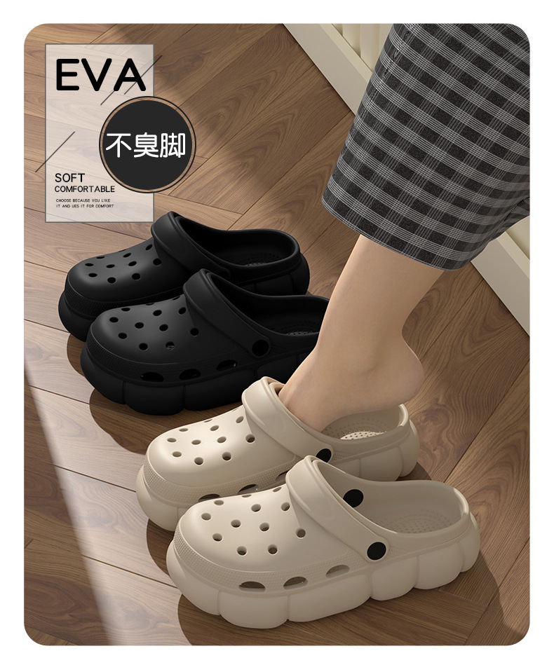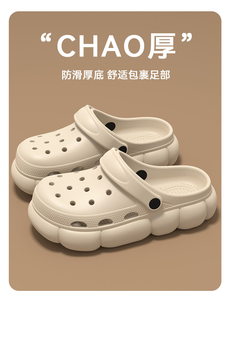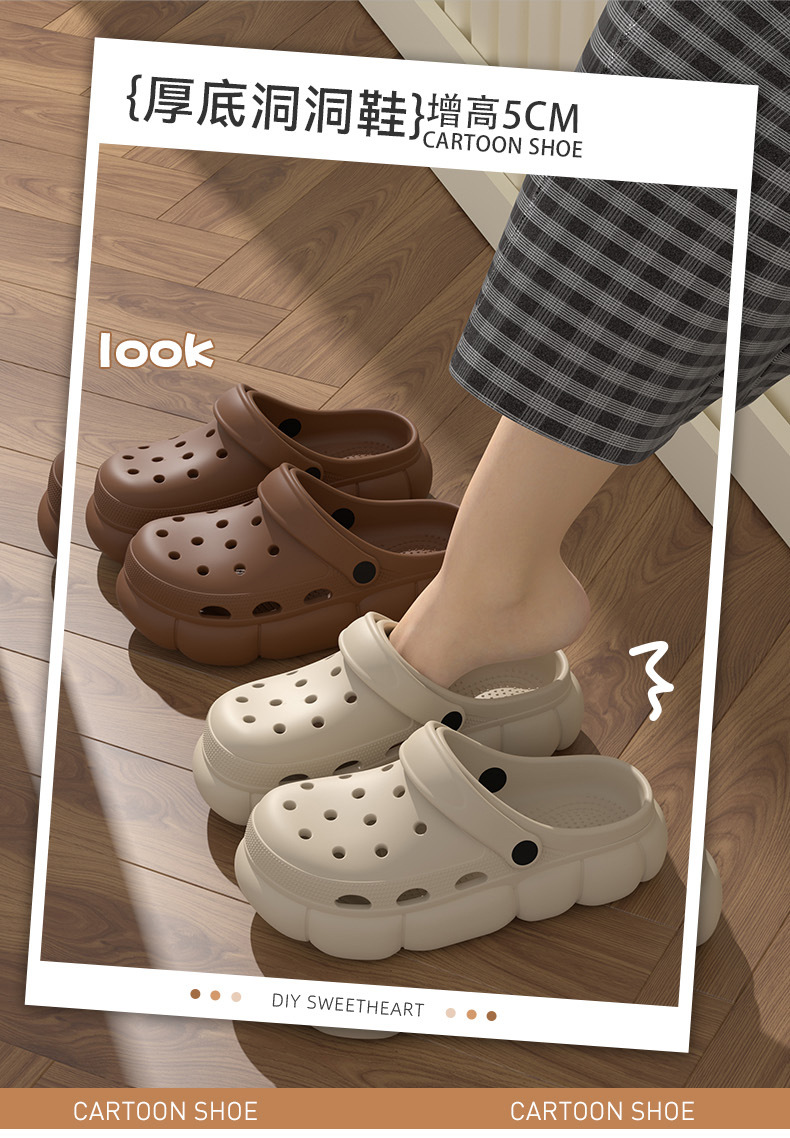 厚底洞洞鞋女夏季外穿2025新款室內防滑戶外沙灘包頭半涼拖鞋女士