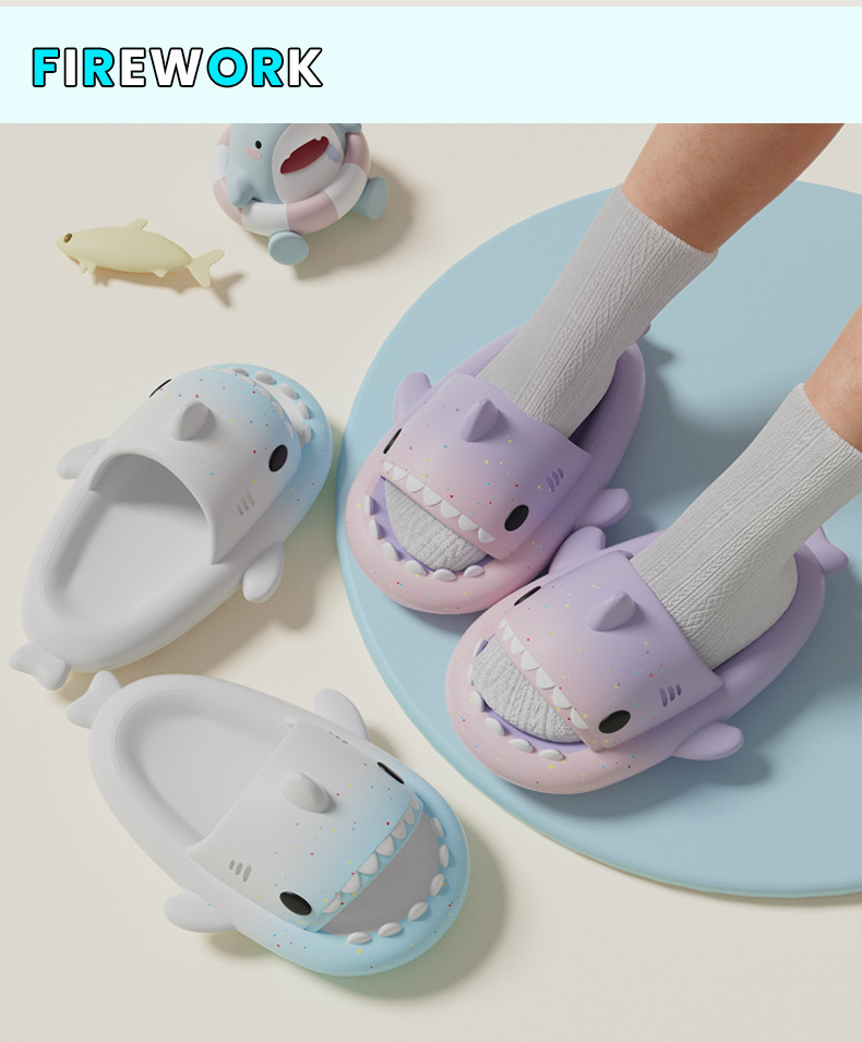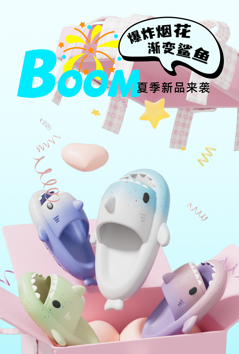 兒童菸花漸變鯊魚拖鞋男童女童夏外穿2025新款室內居家用寶寶涼拖
