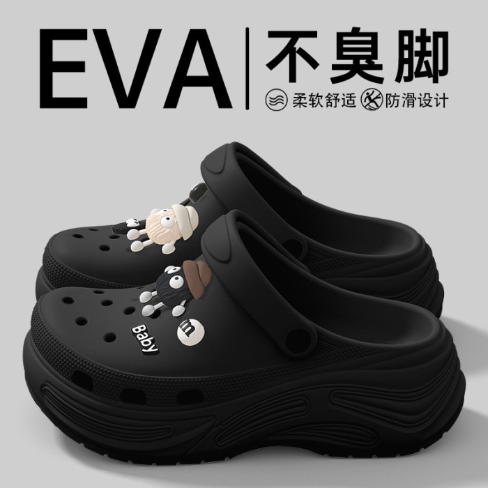 卡通親子洞洞鞋女夏季外穿2025新款增高厚底耐磨時尚包頭拖鞋女夏