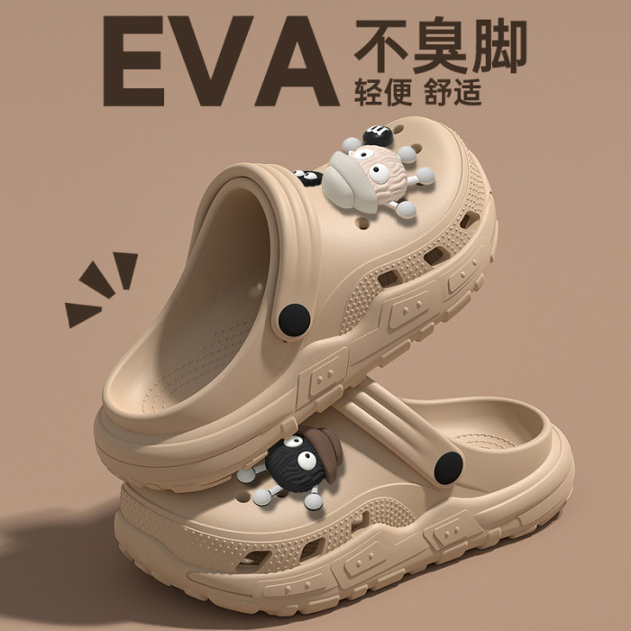 洞洞鞋男夏季外穿包頭2025新款防滑防臭沙灘黑色情侶eva涼鞋女士