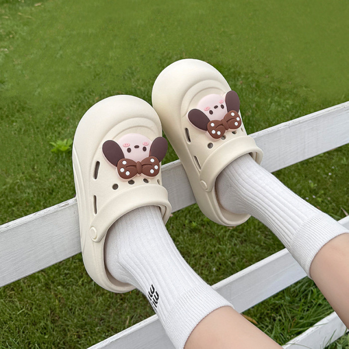 2025年新款夏季涼鞋女加厚底防滑耐磨洞洞踩屎感軟底沙灘兩穿拖鞋
