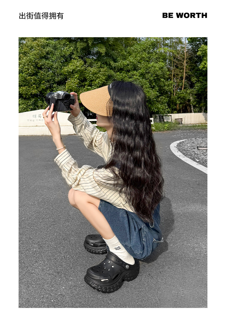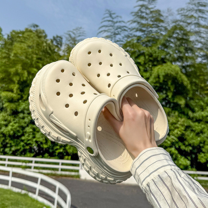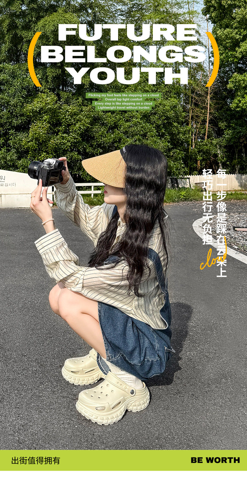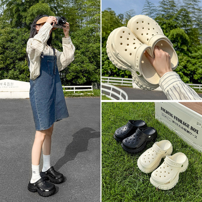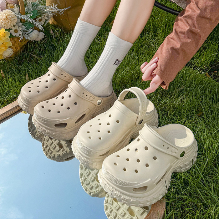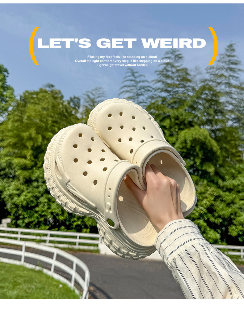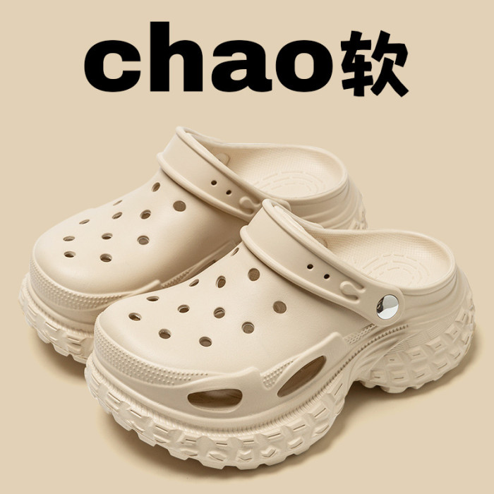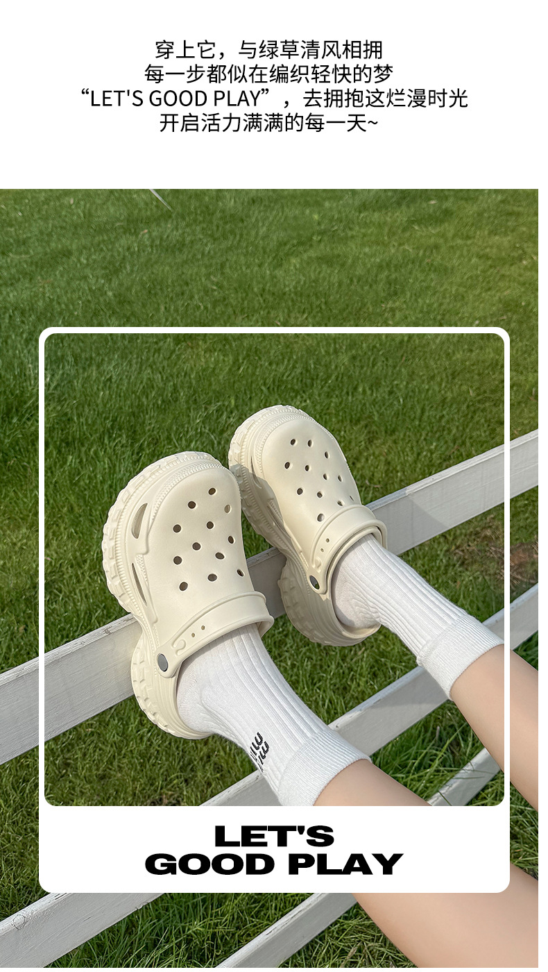 輪胎超厚底外穿包頭拖鞋夏戶外穿防滑踩屎感EVA增高可愛洞洞鞋女