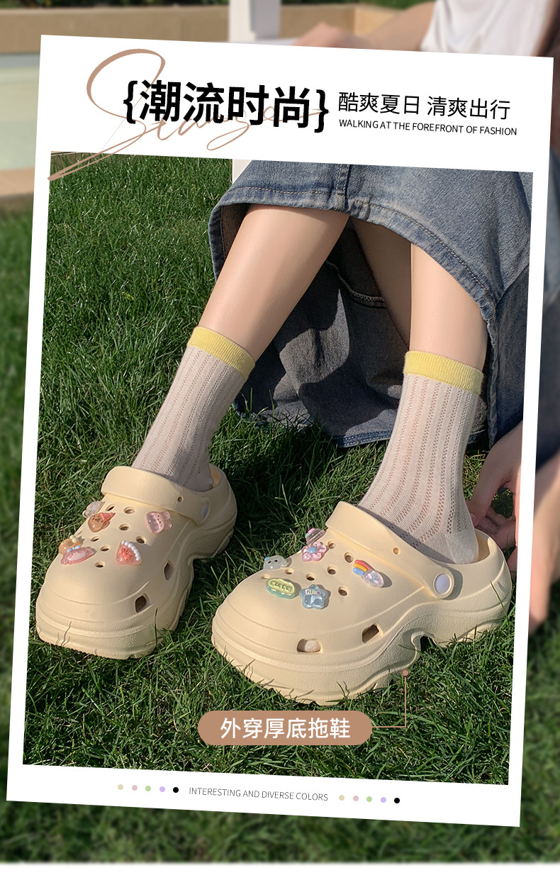厚底增高eva洞洞鞋女款夏外穿防滑防臭2025新款網紅沙灘包頭拖鞋