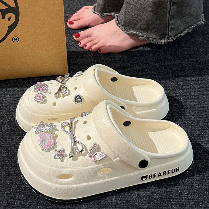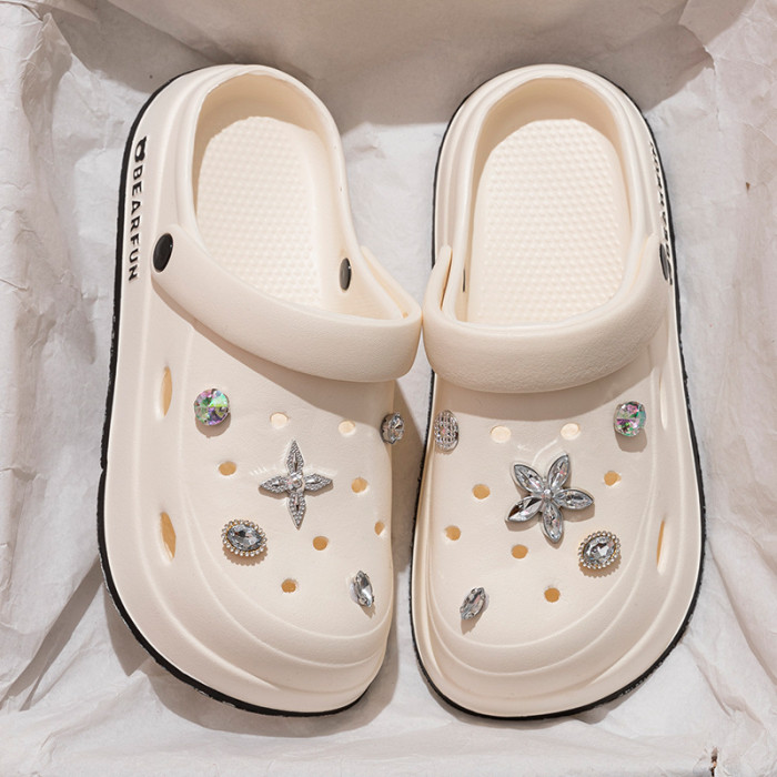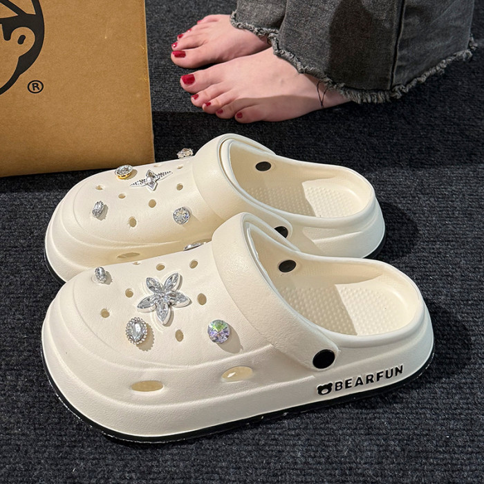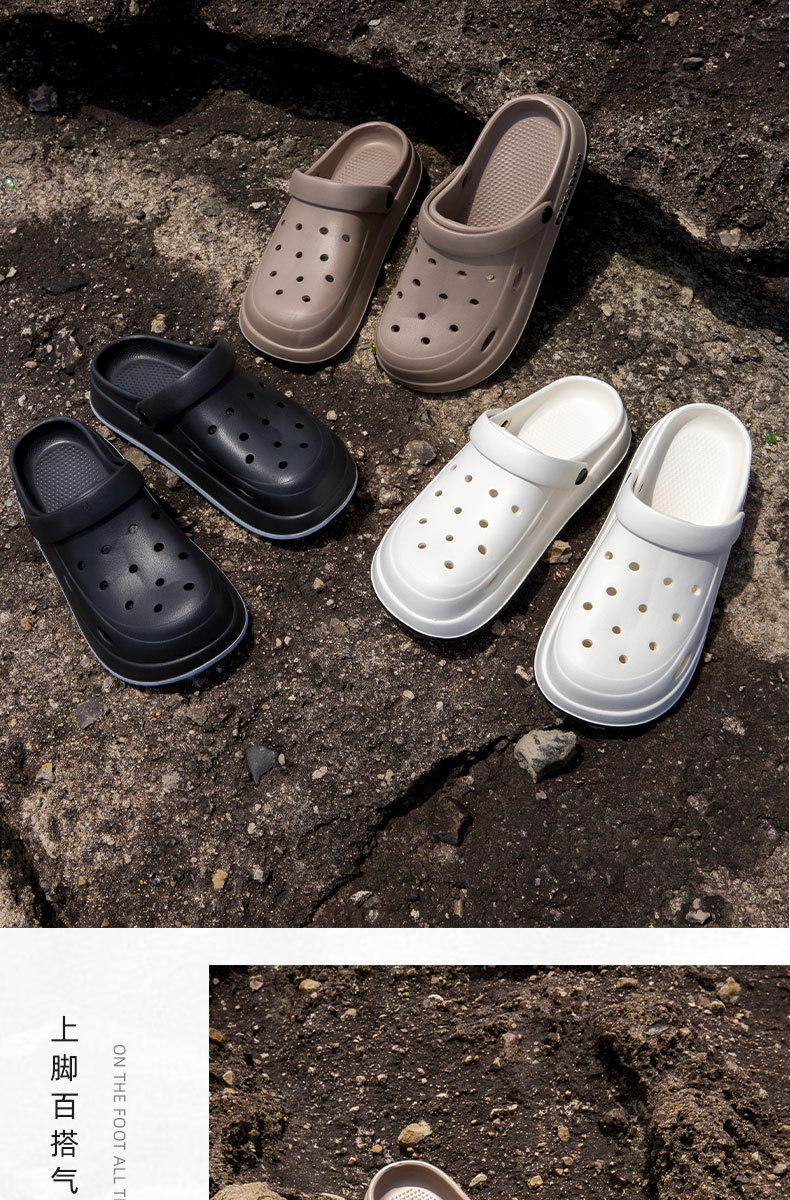 踩屎感洞洞鞋女夏外穿防滑網紅超火沙灘厚底eva防臭包頭涼拖鞋男