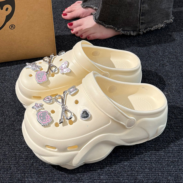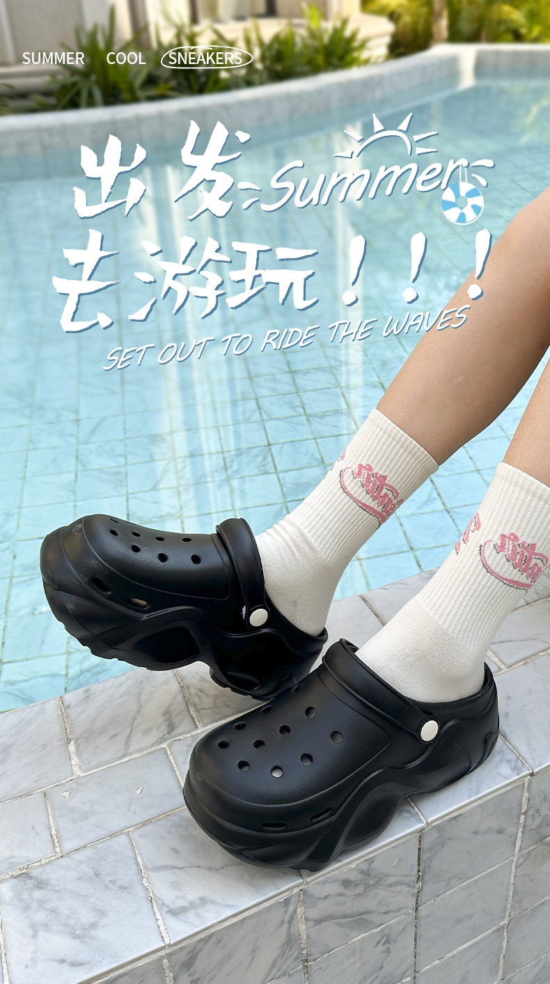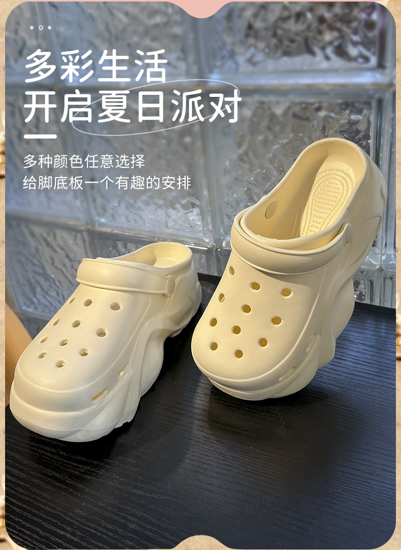 厚底洞洞鞋女款夏季外穿增高eva沙灘防滑防臭辦公室包頭涼拖鞋女