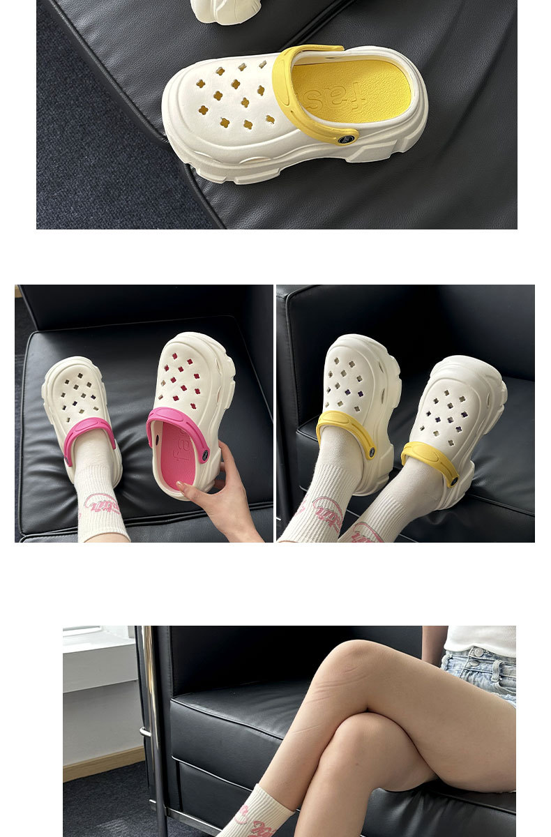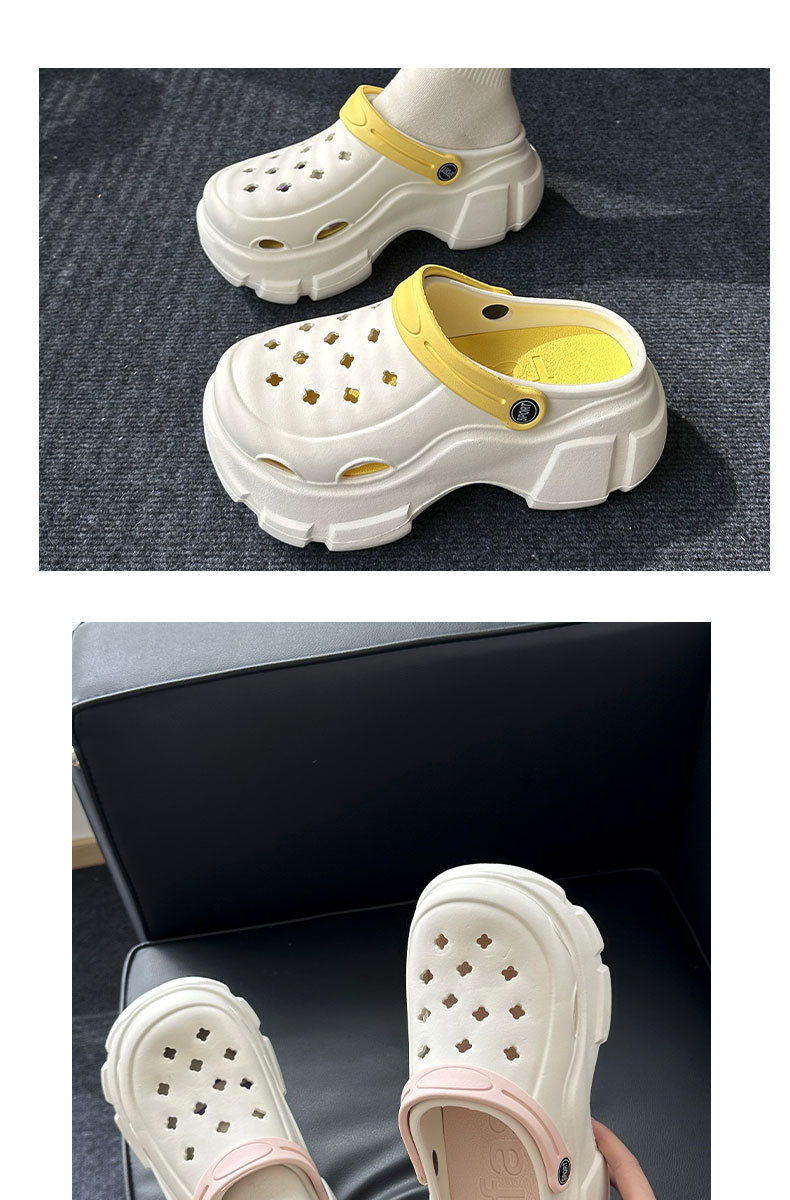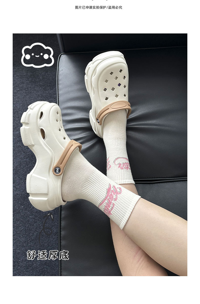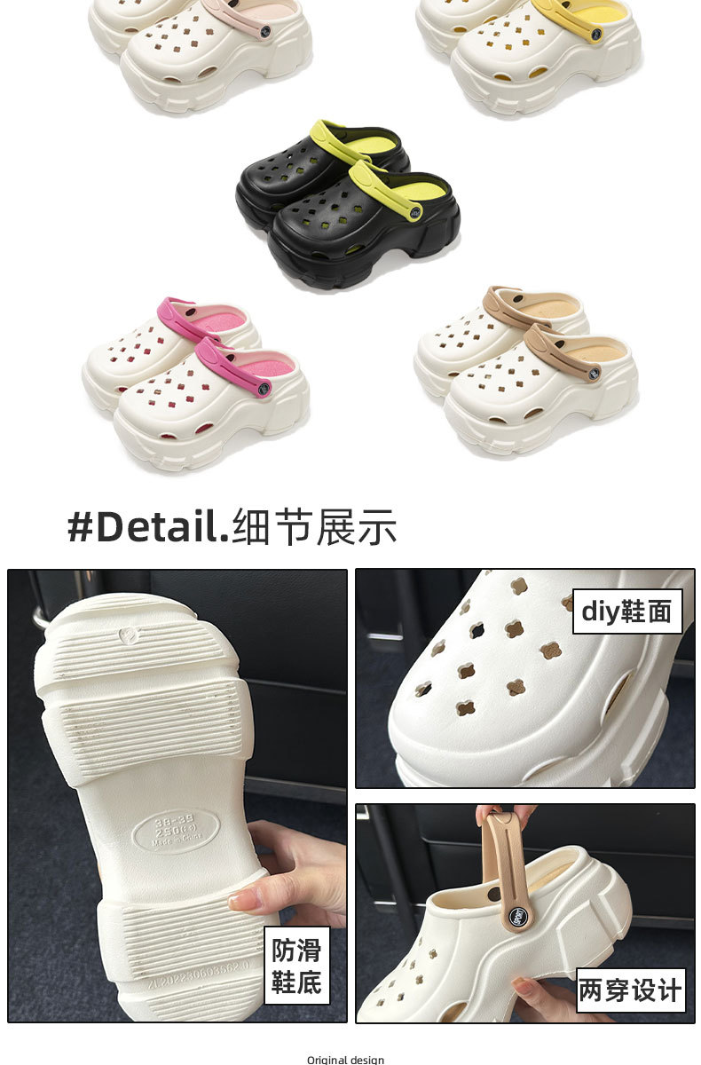 ins時尚拼色厚底洞洞鞋女夏季外穿防臭沙灘涼鞋戶外增高包頭拖鞋