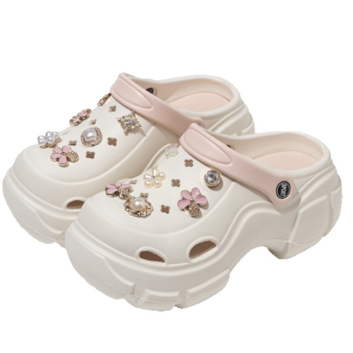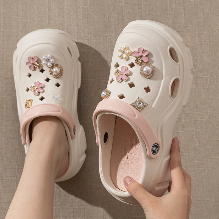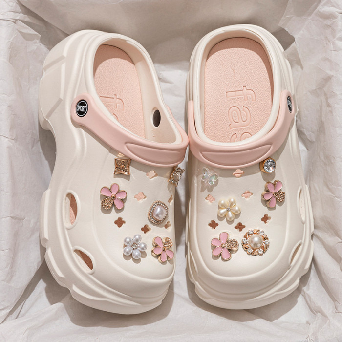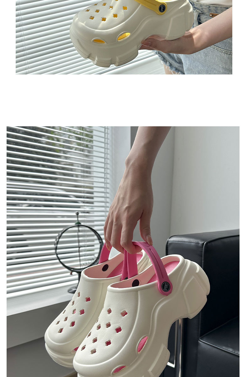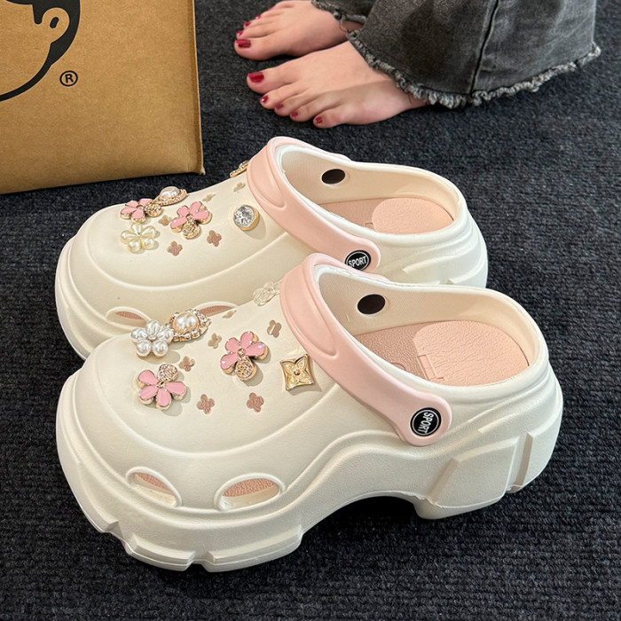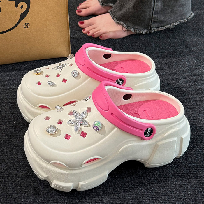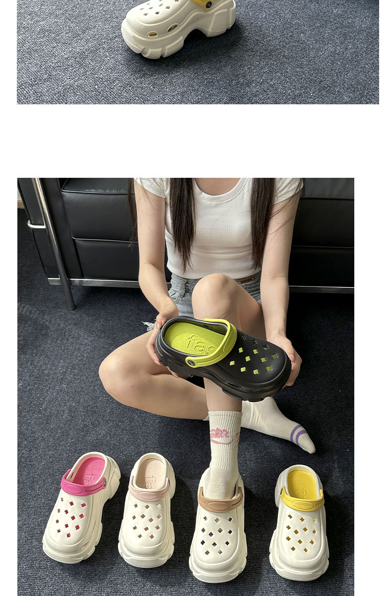 ins時尚拼色厚底洞洞鞋女夏季外穿防臭沙灘涼鞋戶外增高包頭拖鞋