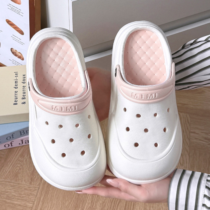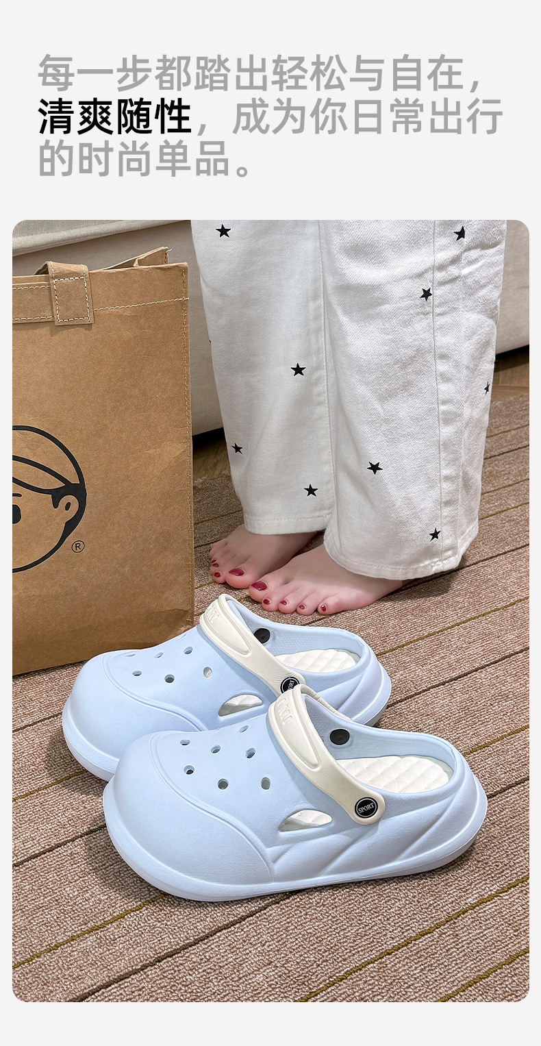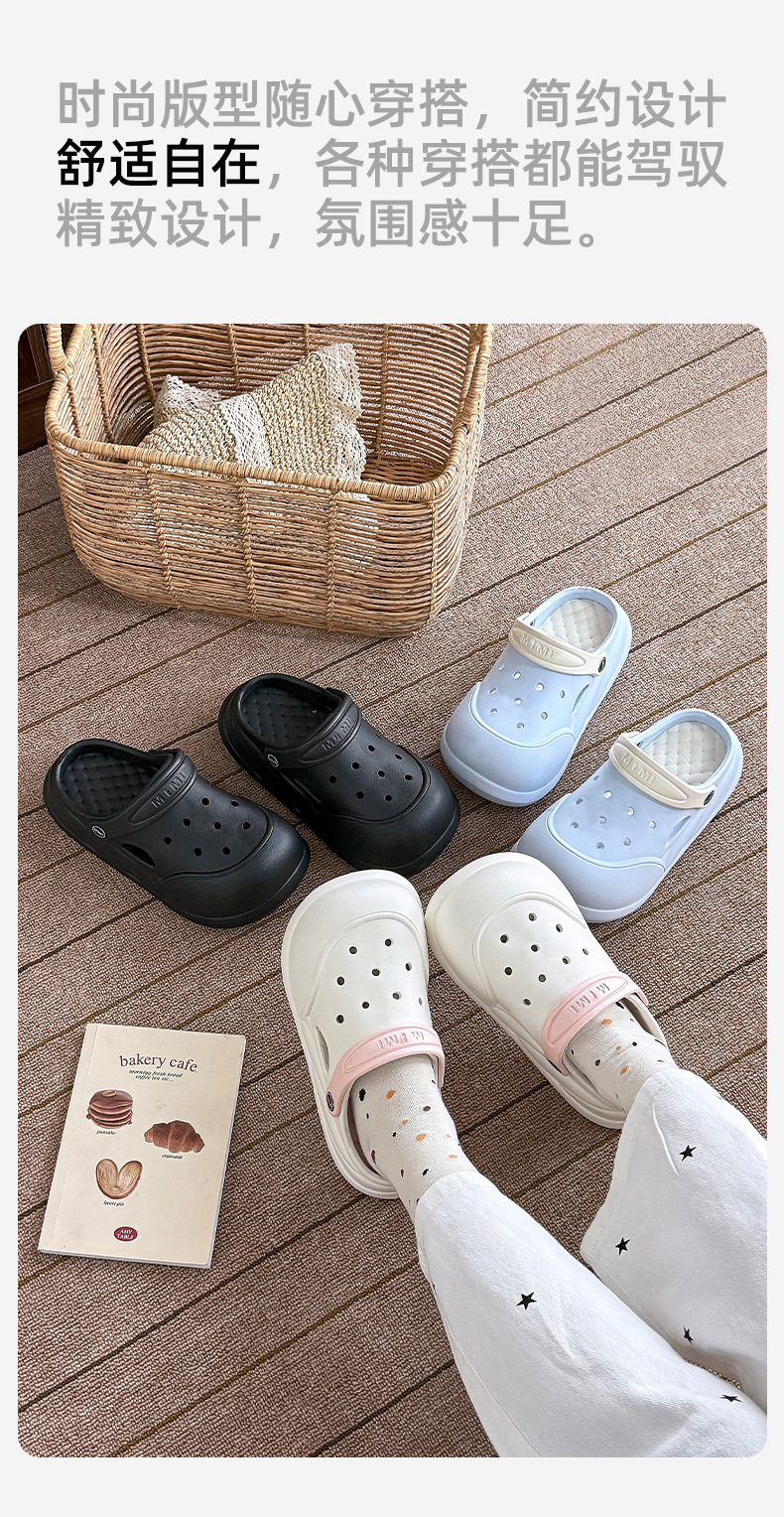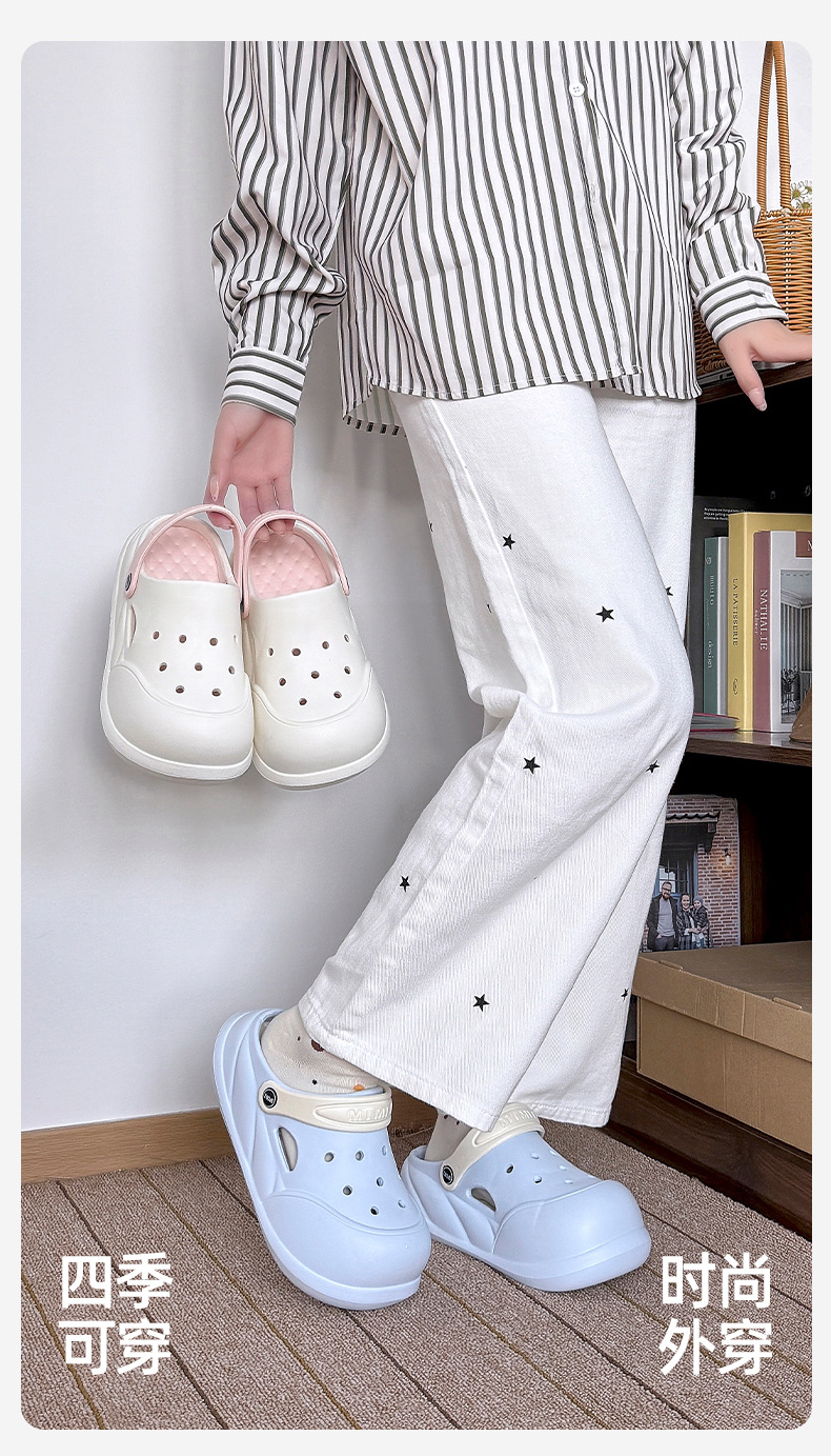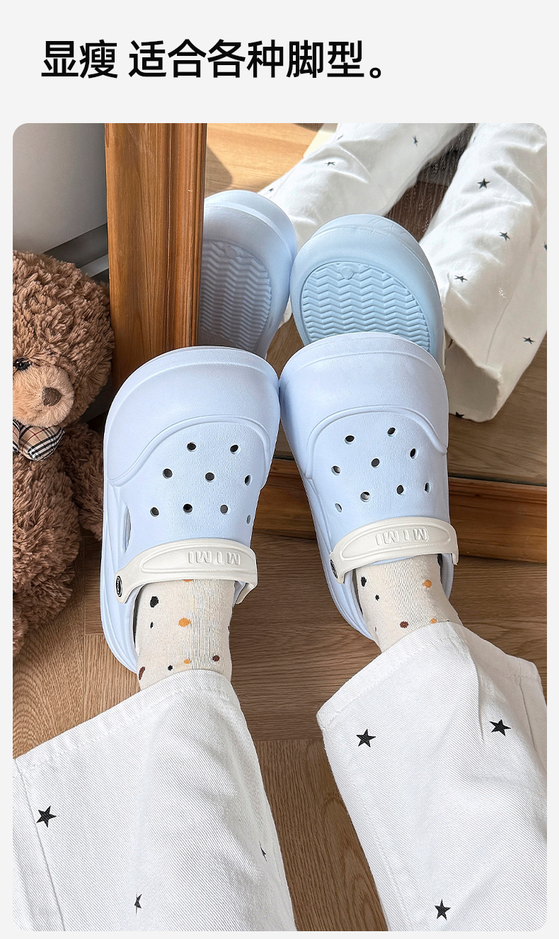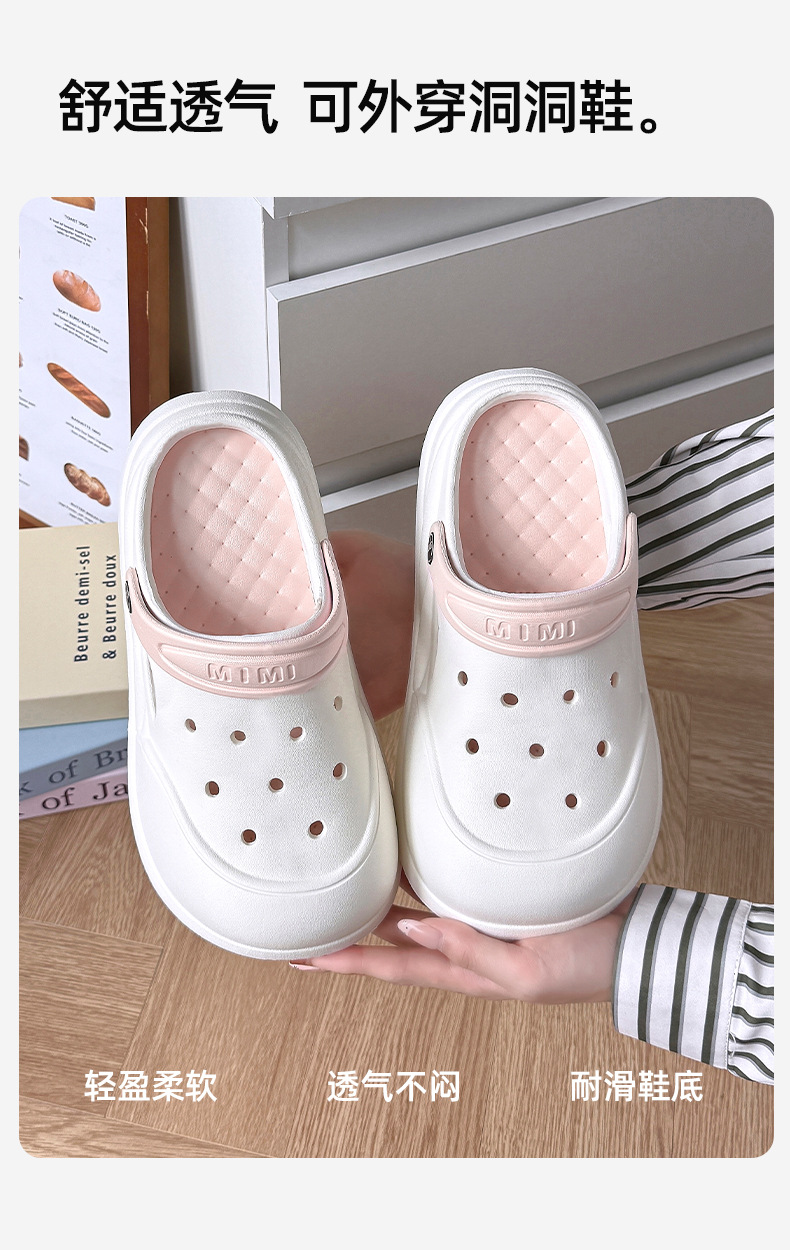 厚底洞洞鞋新款不臭腳防滑透氣可愛風女款室外顯高拖鞋可搭配飾女