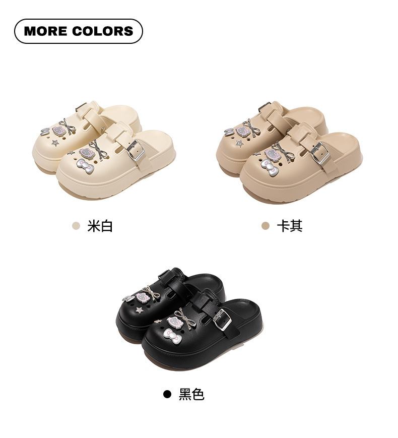 可愛卡通貓咪一字釦帶洞洞鞋女2025夏季新款外穿包頭拖鞋沙灘涼拖