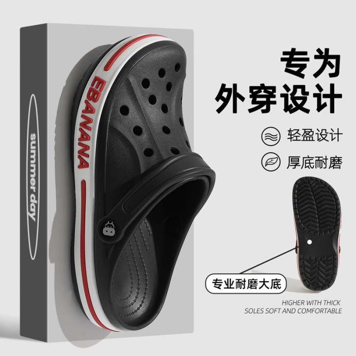 新款設計感洞洞沙灘鞋戶外休閒洞洞鞋鞋男女情侶透氣防滑涼拖鞋男