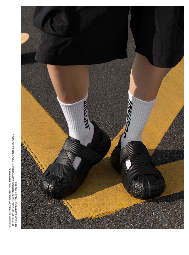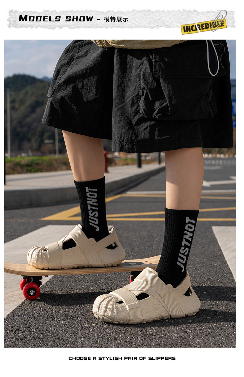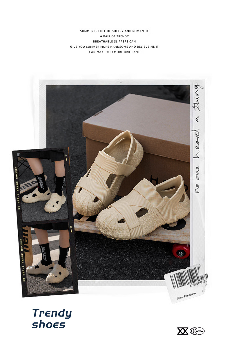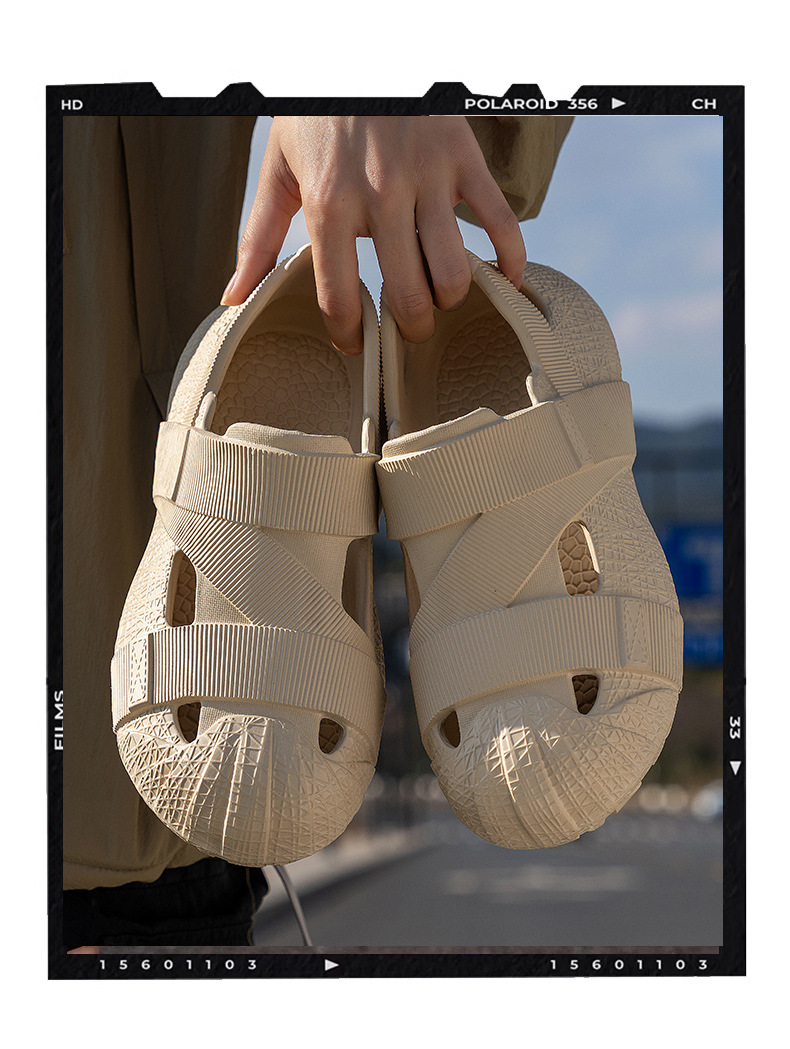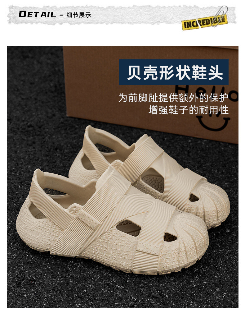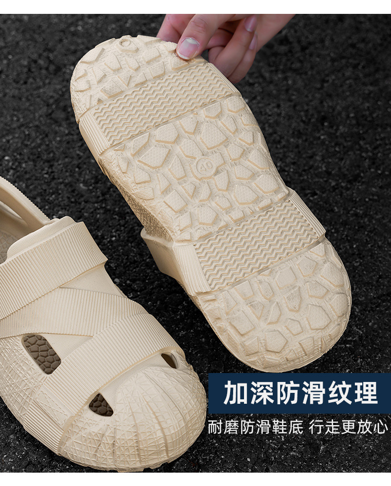 洞洞鞋男款夏季厚底踩屎感大碼包頭拖鞋外穿防滑運動開車沙灘涼鞋