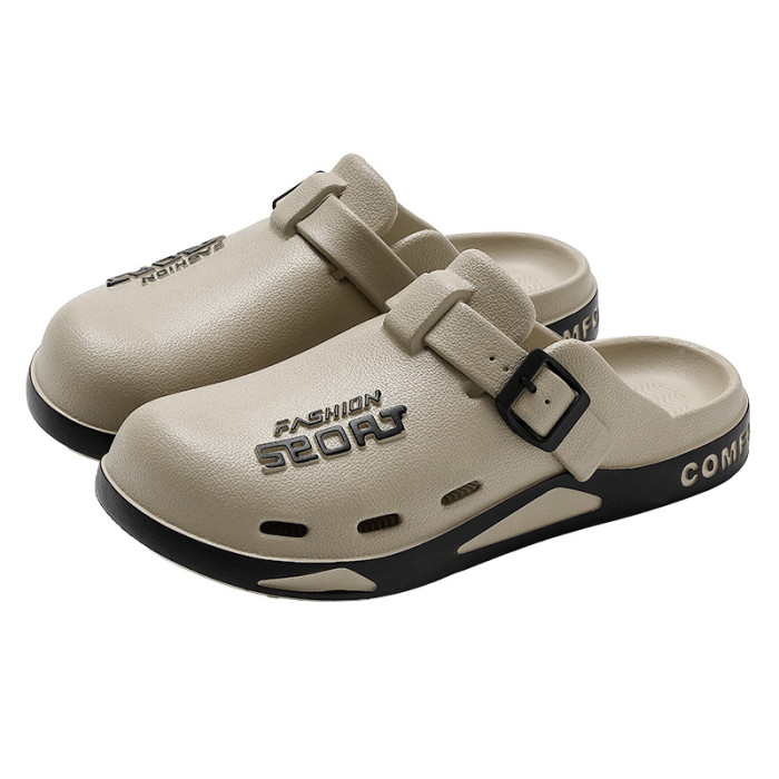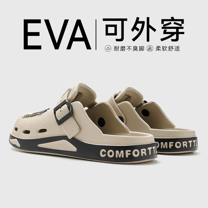 男士博肯洞洞鞋夏季外穿休閒eva軟底家居室內防滑包頭拖鞋男