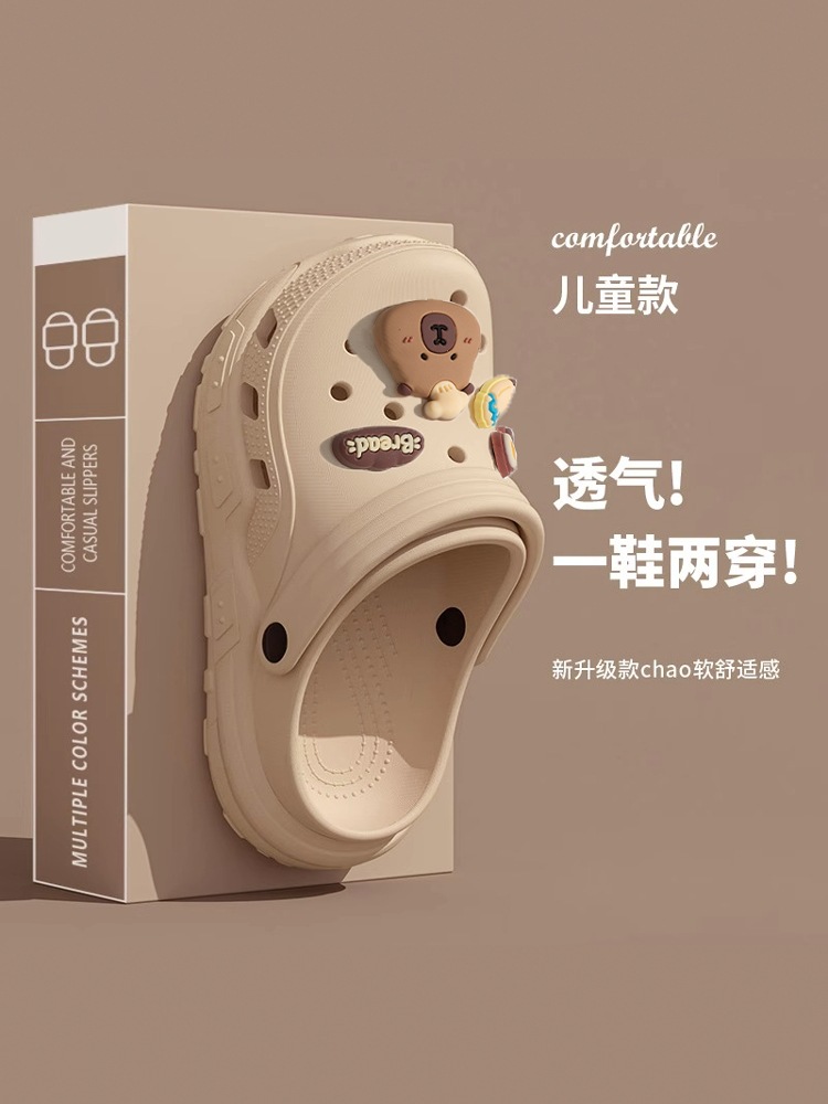 卡皮巴拉兒童洞洞鞋男童2025新款外穿防滑不臭腳寶寶親子涼拖女孩
