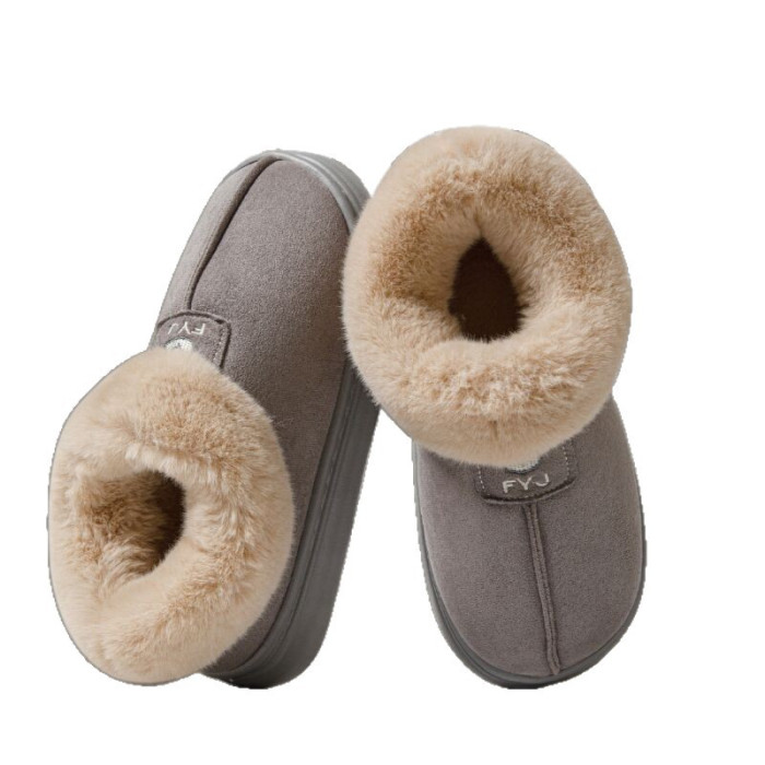 棉拖鞋女冬季厚底可外穿包跟雪地靴加絨加厚保暖毛毛拖鞋情侶棉鞋