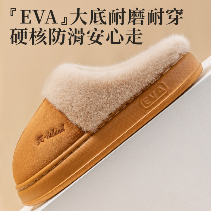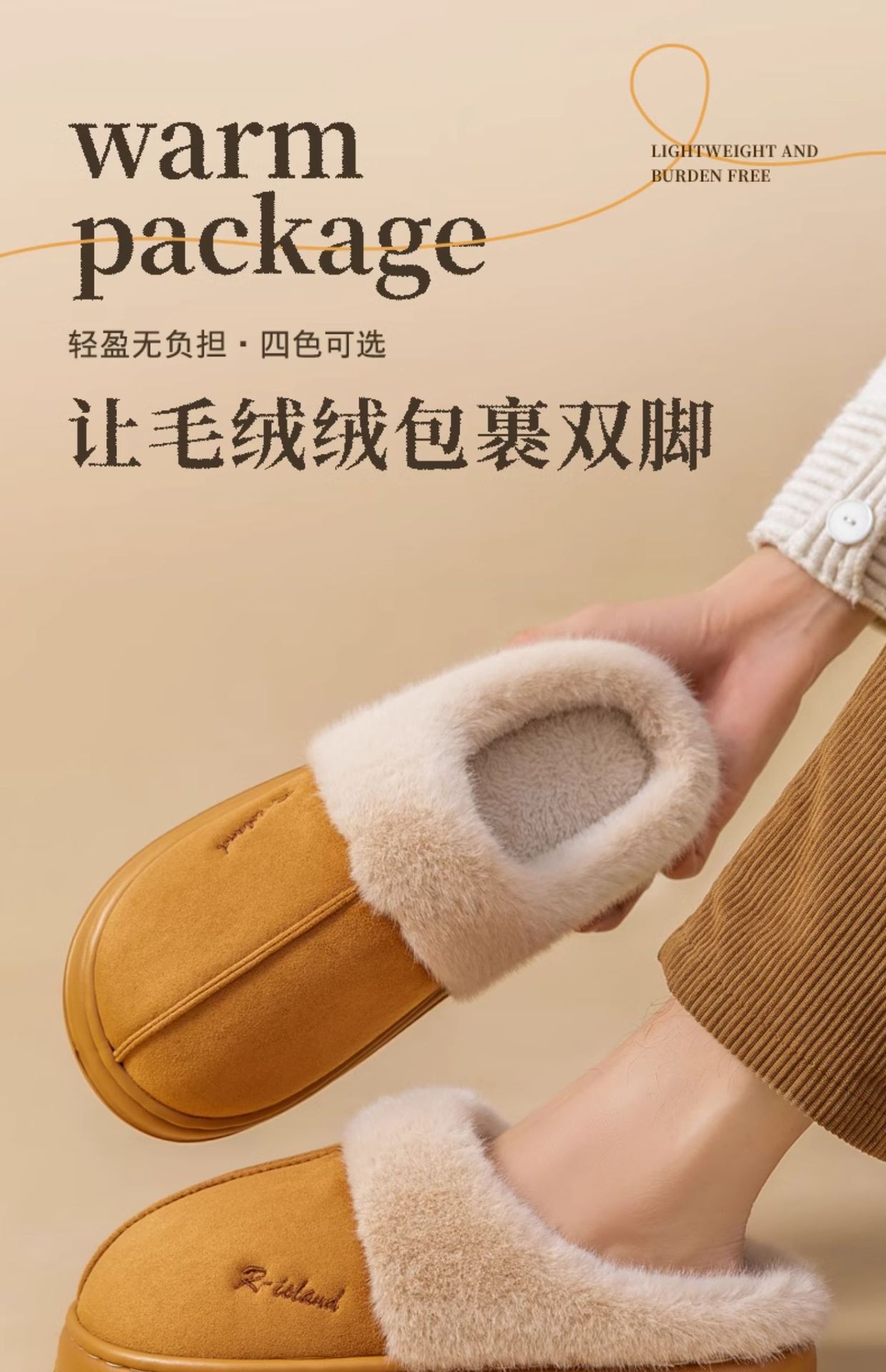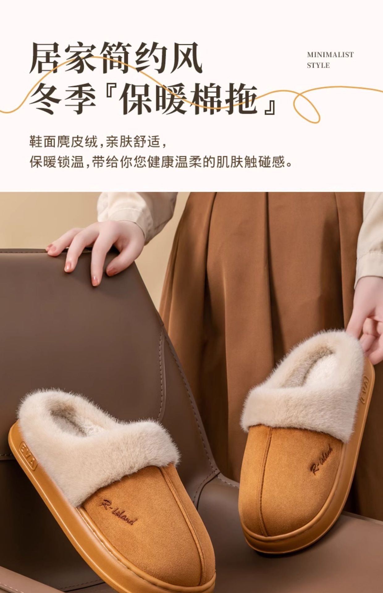 勃肯棉拖鞋女士秋冬季外穿2025新款厚底防滑保暖毛絨半包頭拖鞋男