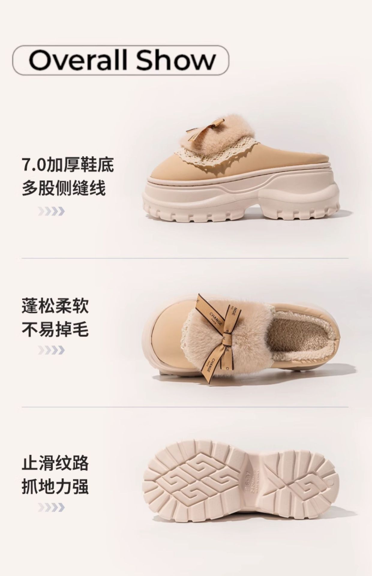 7.0踩屎感厚底棉拖鞋女士秋冬季2025新款外穿防滑毛絨保暖棉拖女