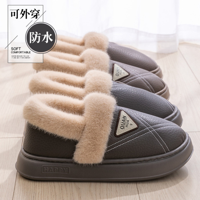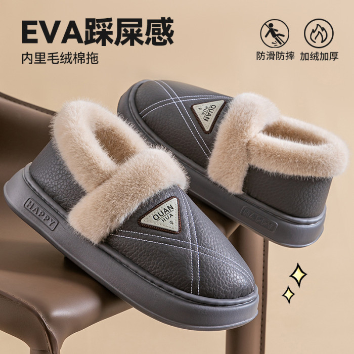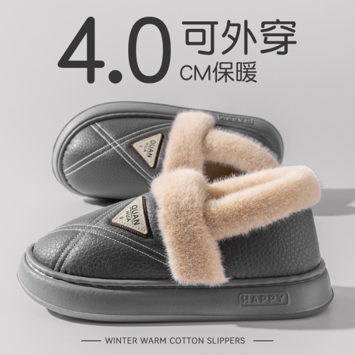 防水棉拖鞋男士冬季包跟外穿2025新款厚底保暖加絨加厚防臭棉鞋男