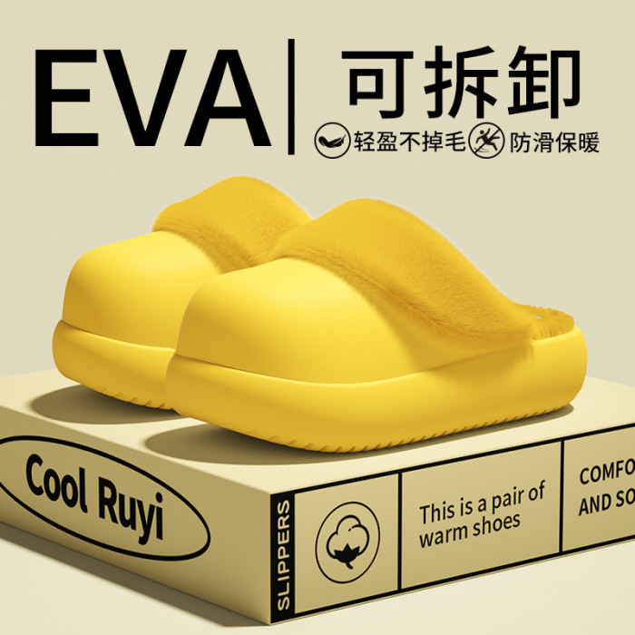 EVA可拆卸毛絨拖鞋女冬季輕盈防滑保暖居家室內厚底不掉毛棉拖鞋