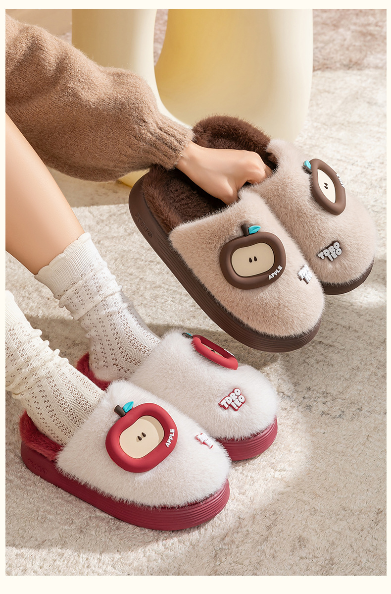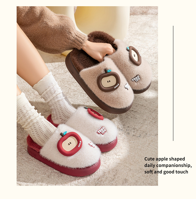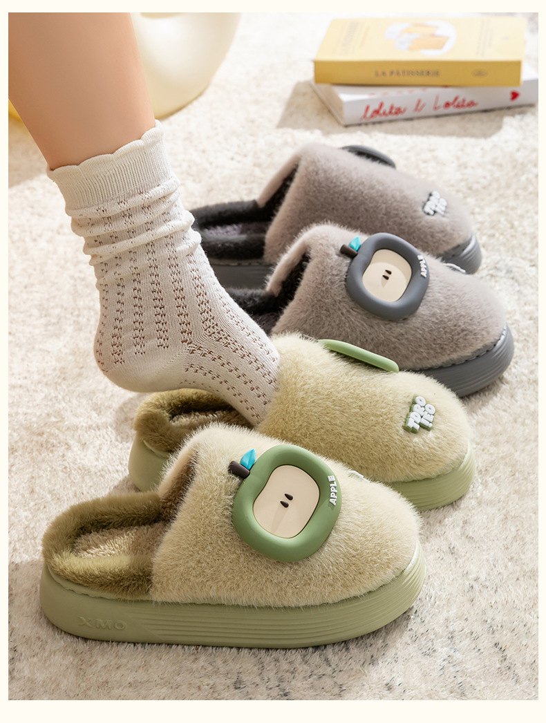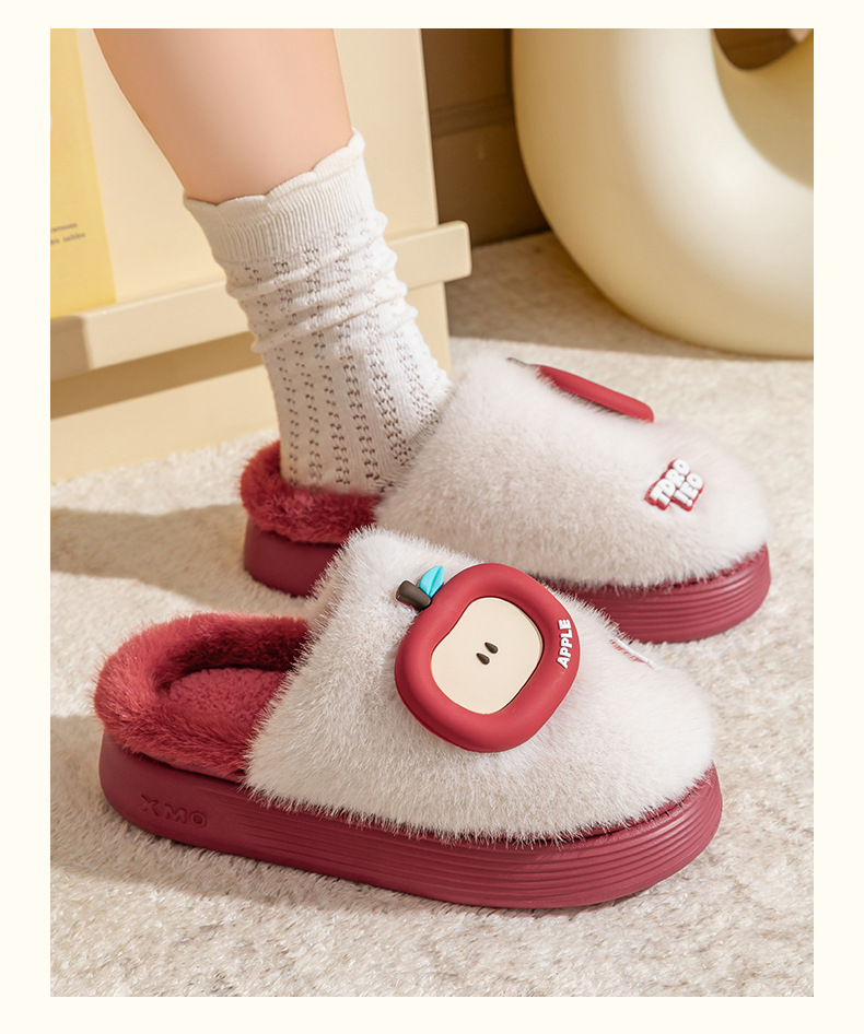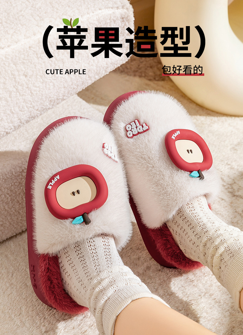 冬季可愛蘋果棉拖鞋女EVA厚底防滑居家鞋ins風地板室內家居棉鞋