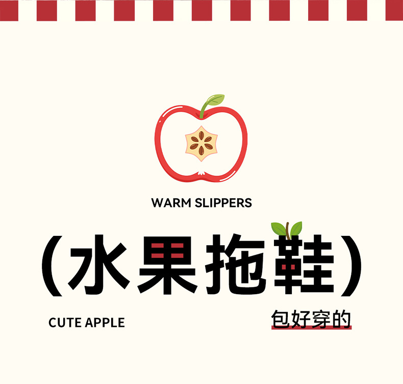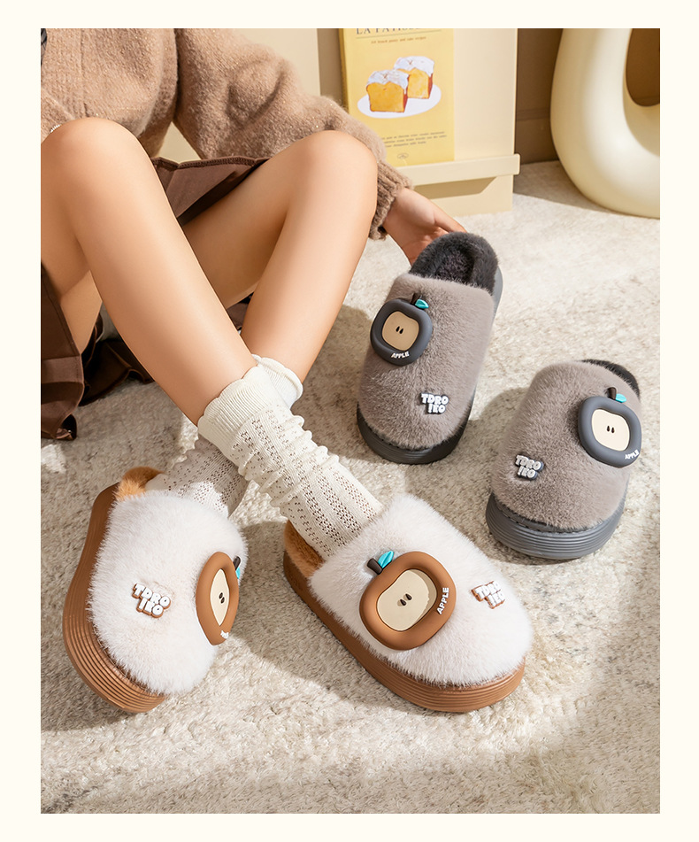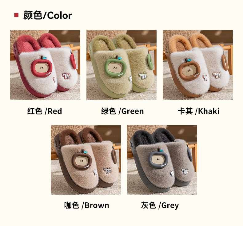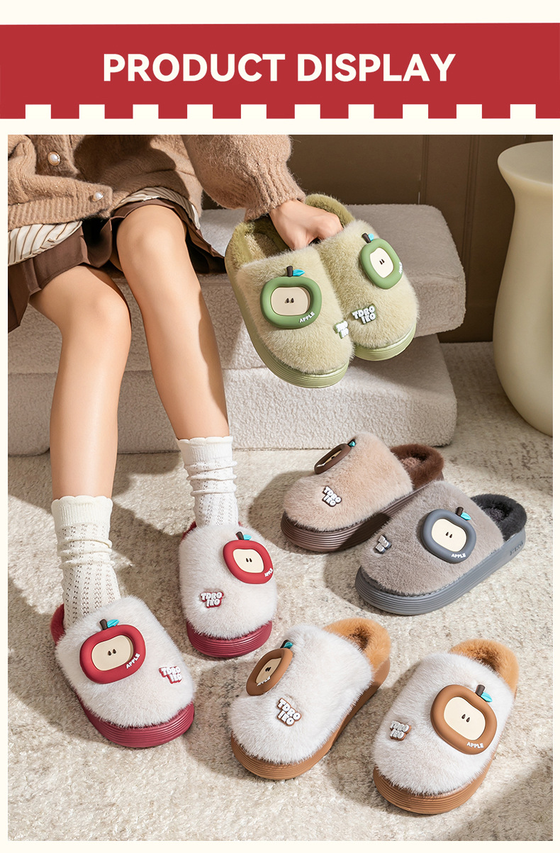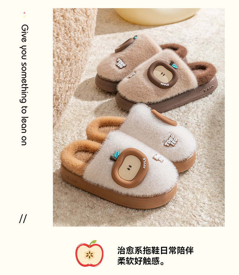 冬季可愛蘋果棉拖鞋女EVA厚底防滑居家鞋ins風地板室內家居棉鞋