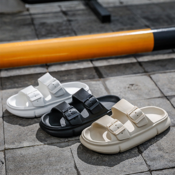 2025親子一字雙釦夏季男女耐穿情侶休閒戶外厚底防滑可調節拖鞋