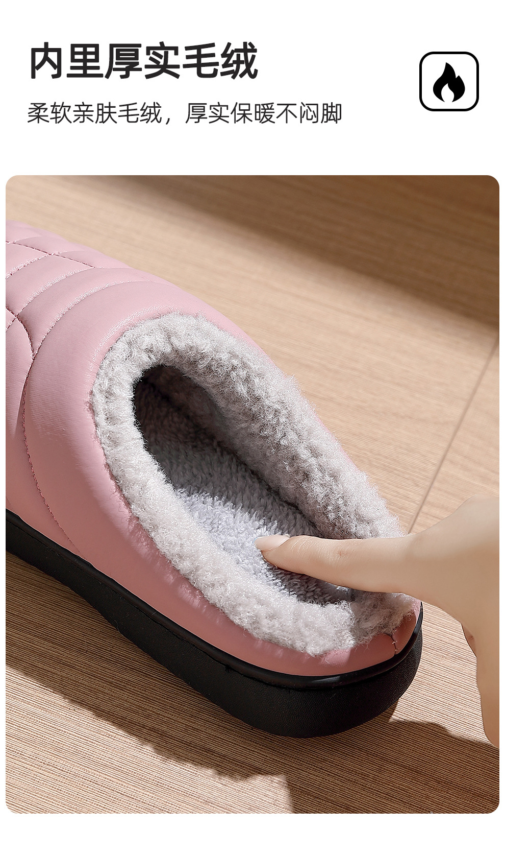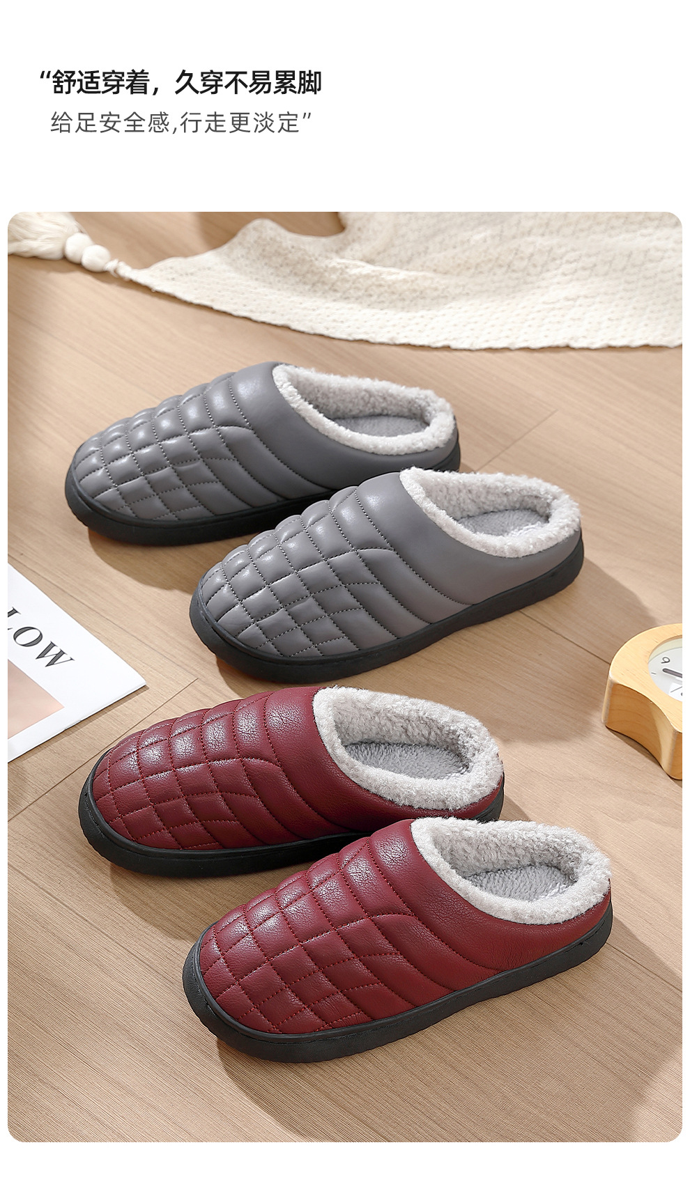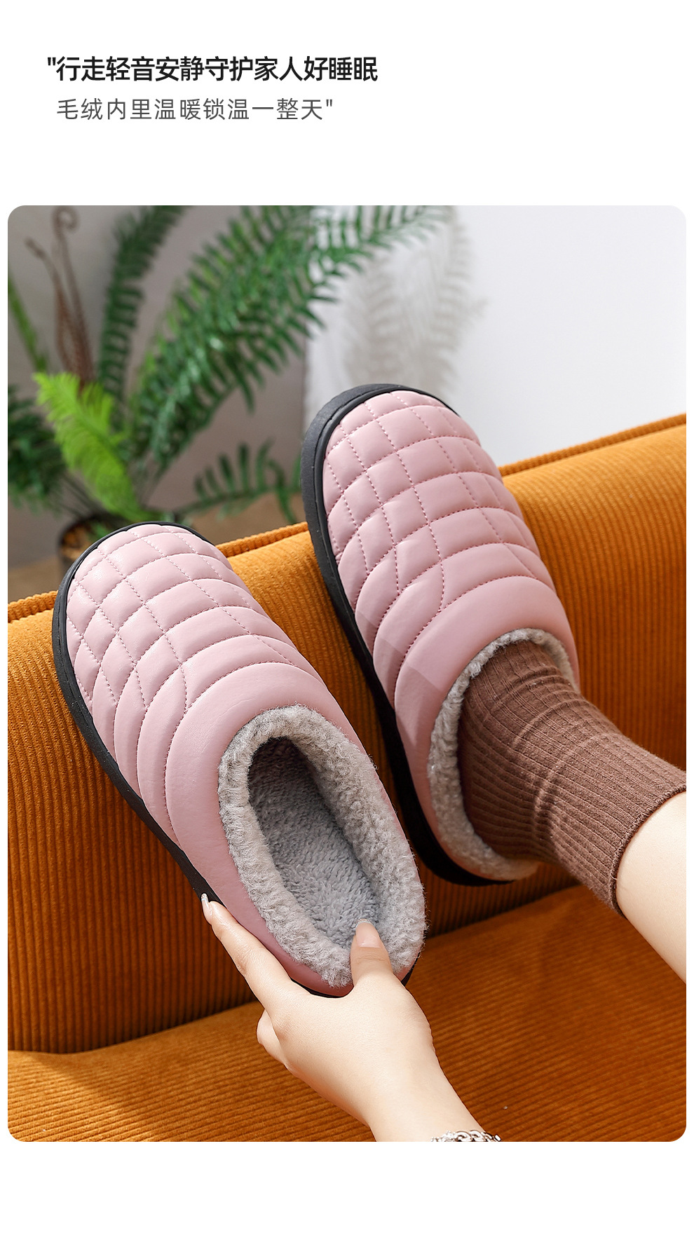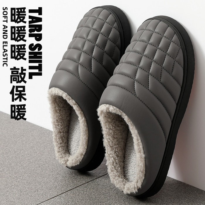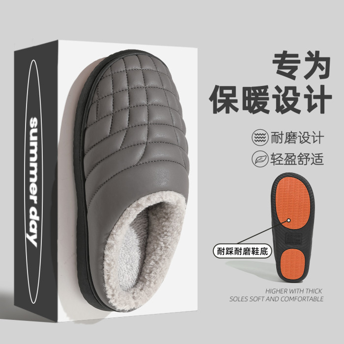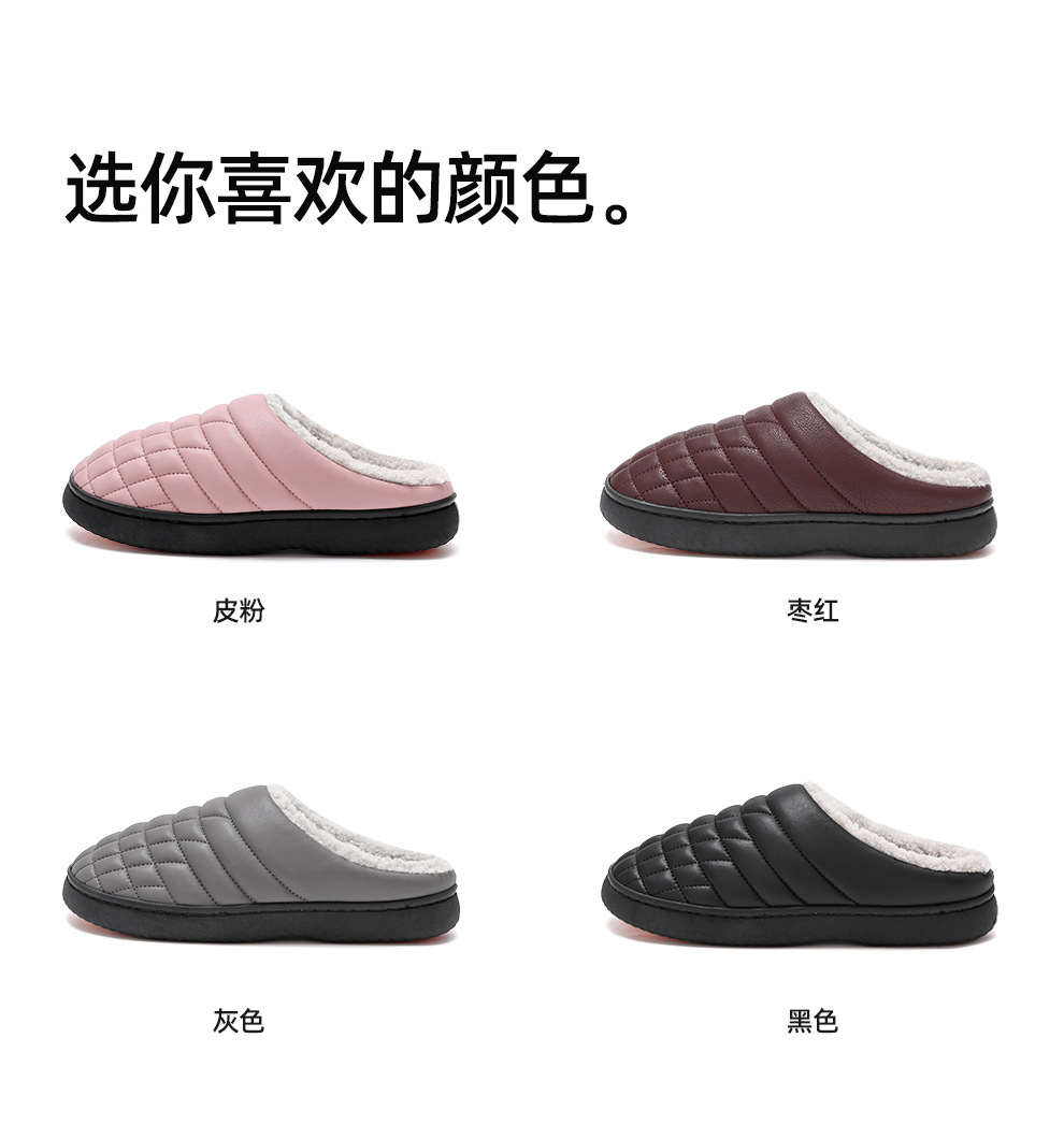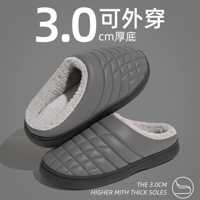 防滑棉拖鞋男秋冬季PU防水中老年家居室內軟底毛絨保暖棉拖女