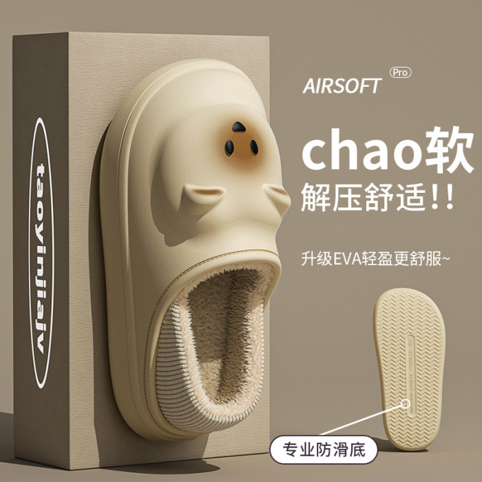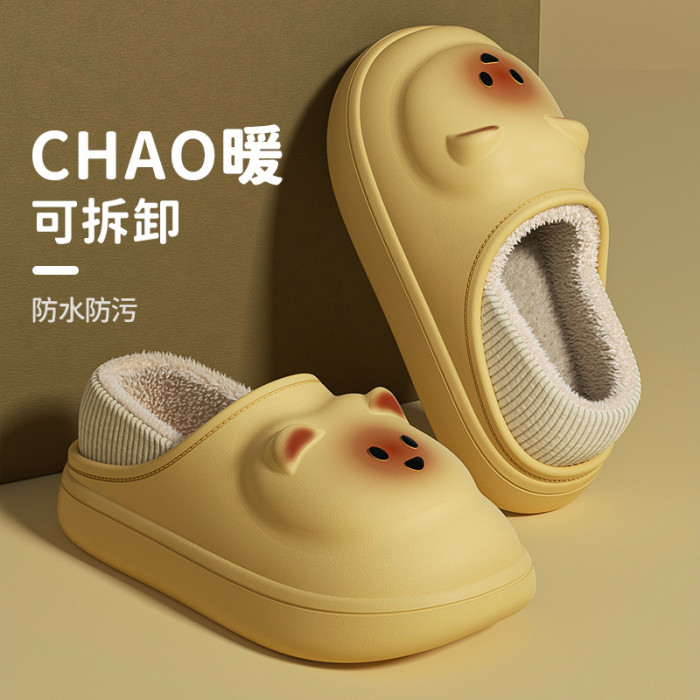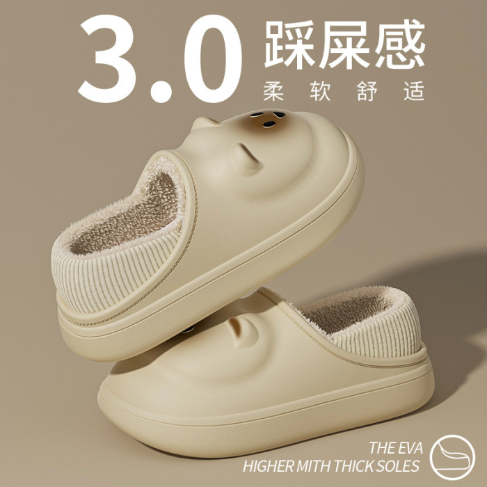 可愛防水棉拖鞋女款冬季包跟外穿保暖室內居家防滑踩屎感厚底棉鞋
