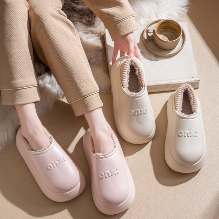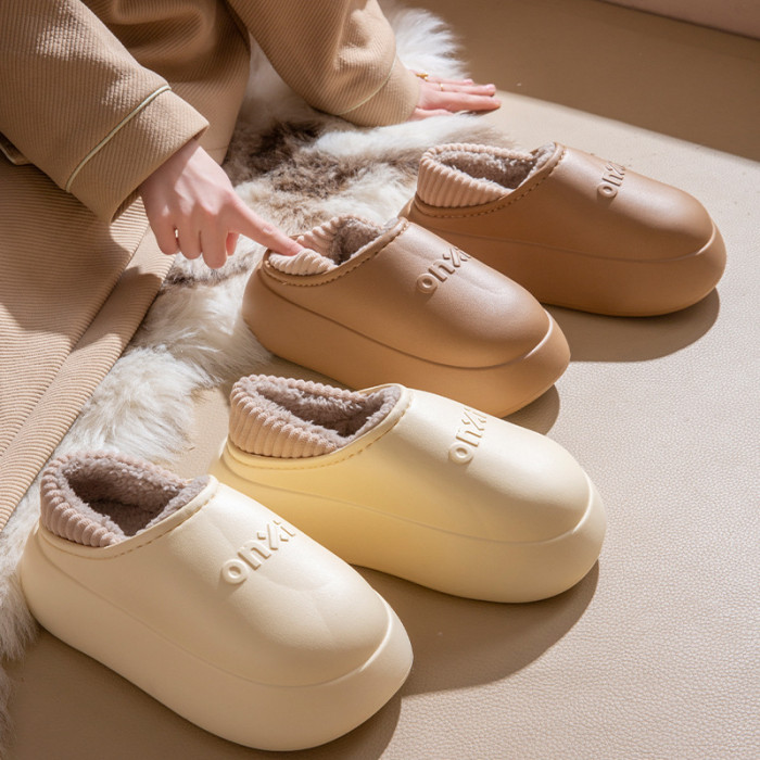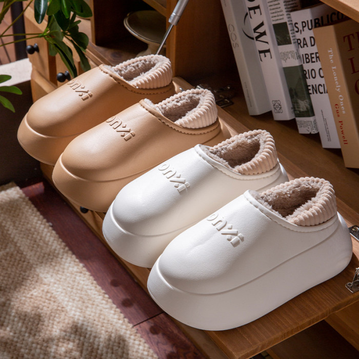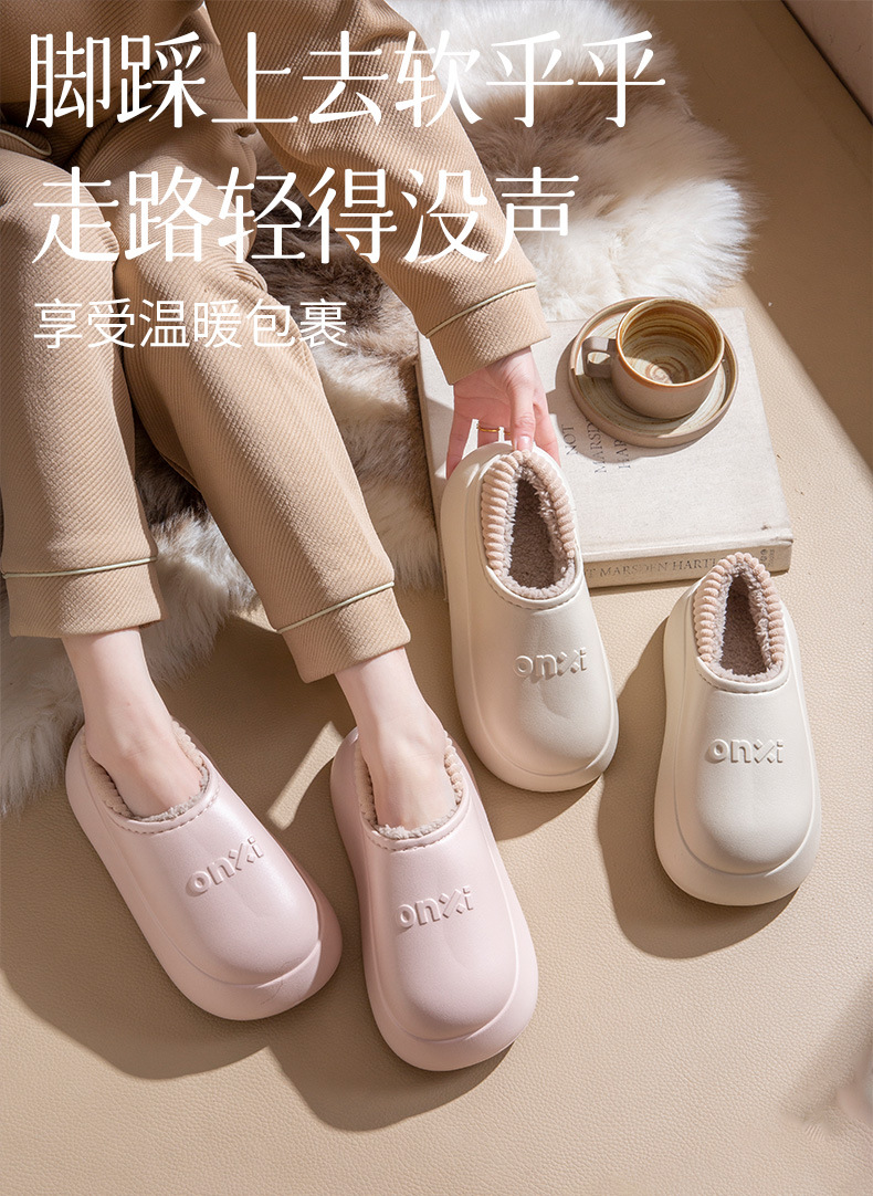 冬季外穿防水棉拖鞋女士2025新款室內居家厚底保暖加絨包跟棉鞋男