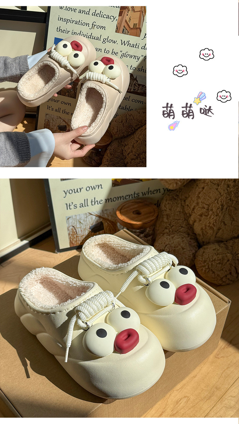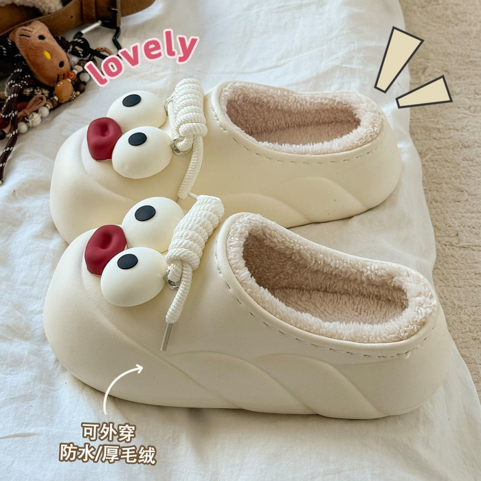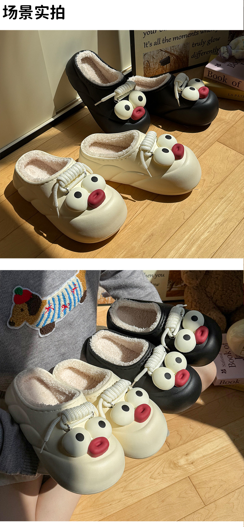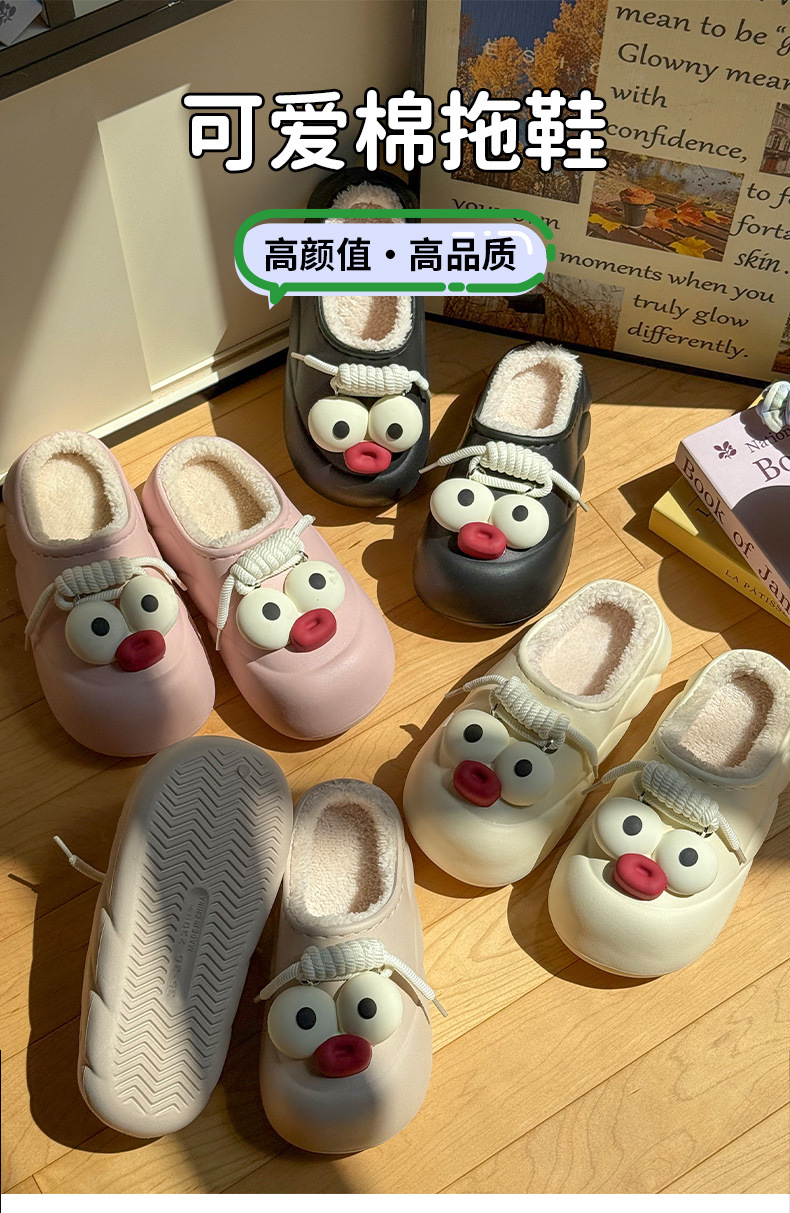 EVA防水棉拖鞋女秋冬季外穿可愛大眼睛厚底防滑月子加絨保暖毛套