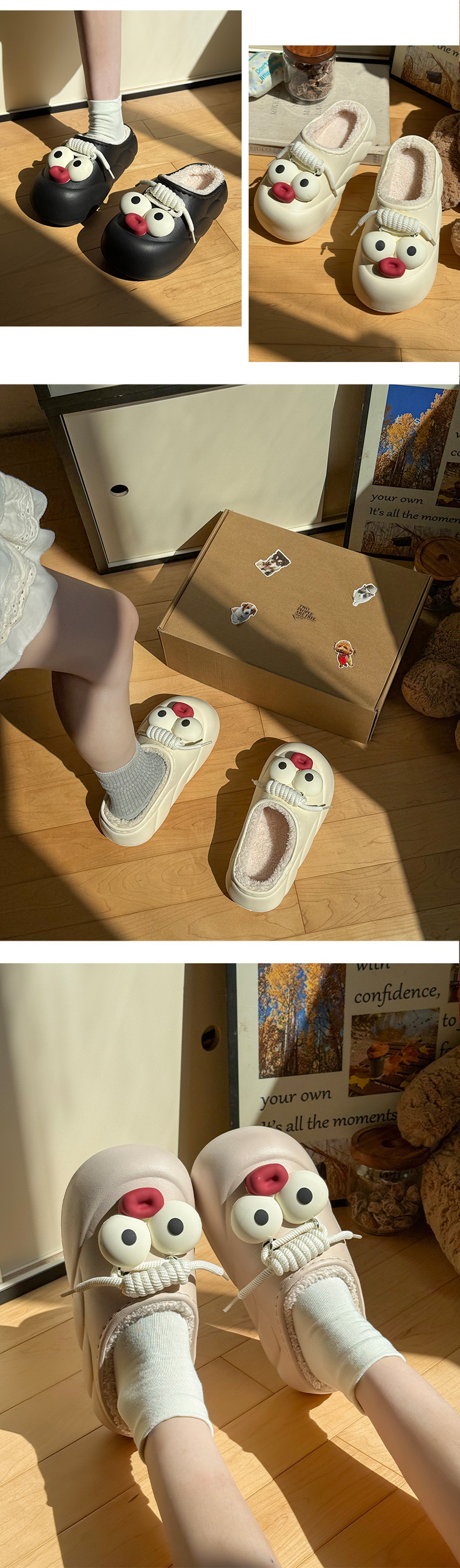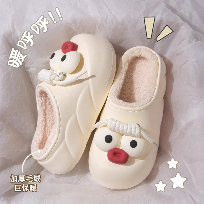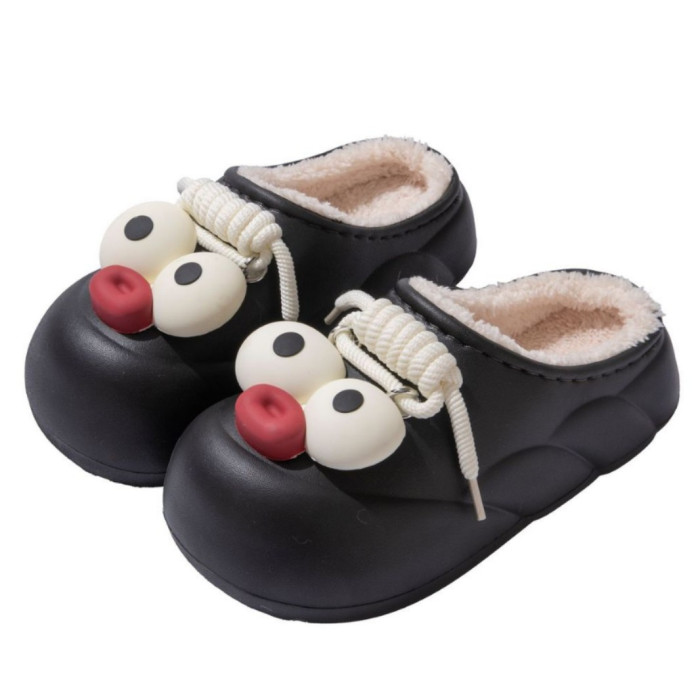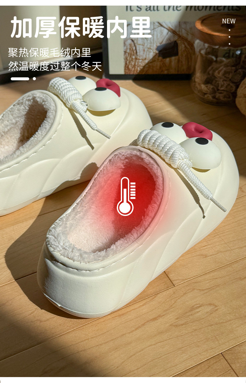 EVA防水棉拖鞋女秋冬季外穿可愛大眼睛厚底防滑月子加絨保暖毛套