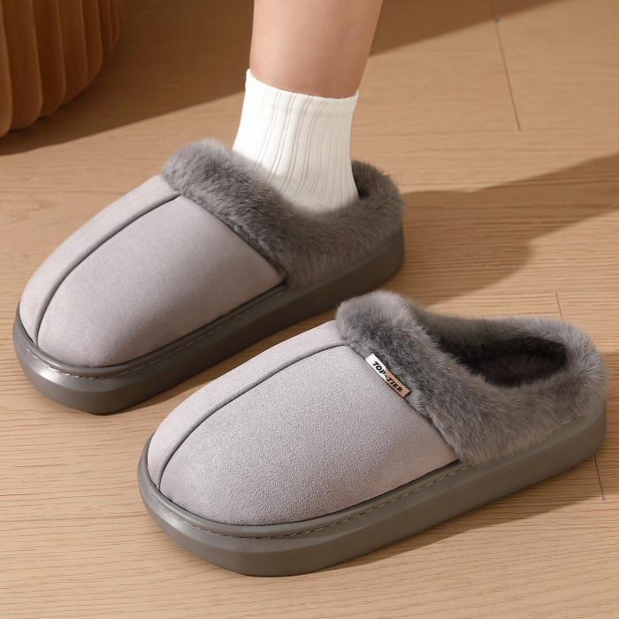翻邊棉拖鞋男冬季家居室內用厚底防滑保暖毛絨半包跟棉拖女士