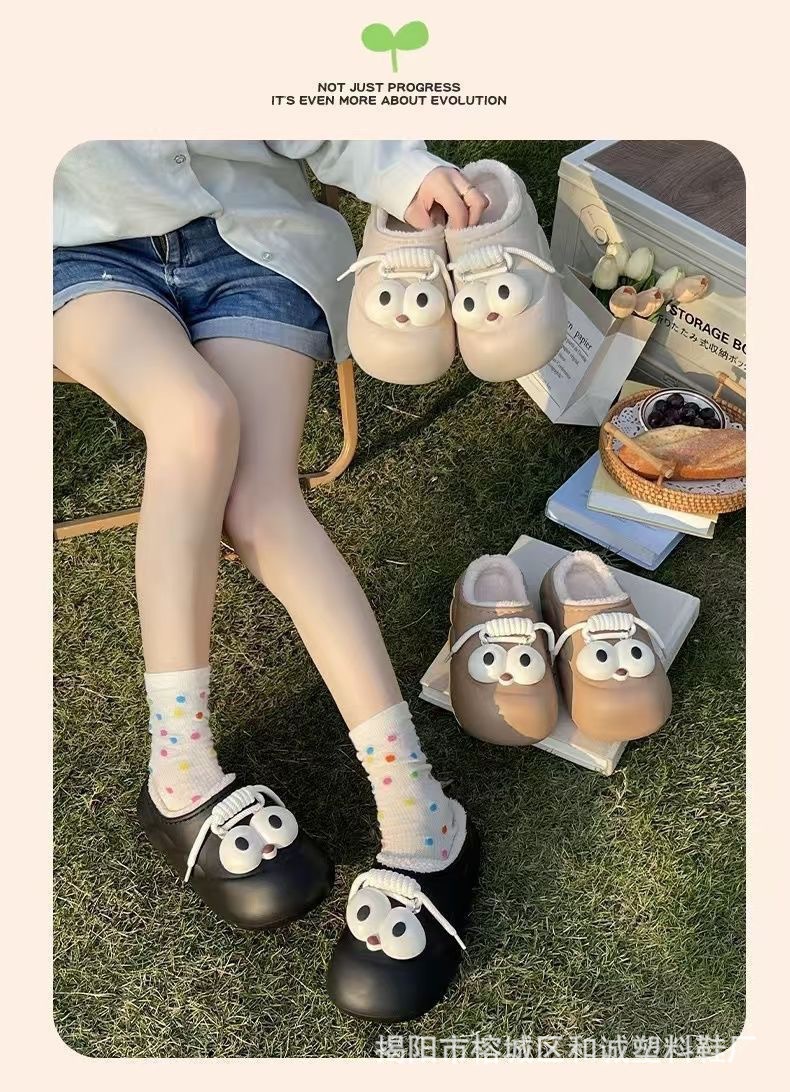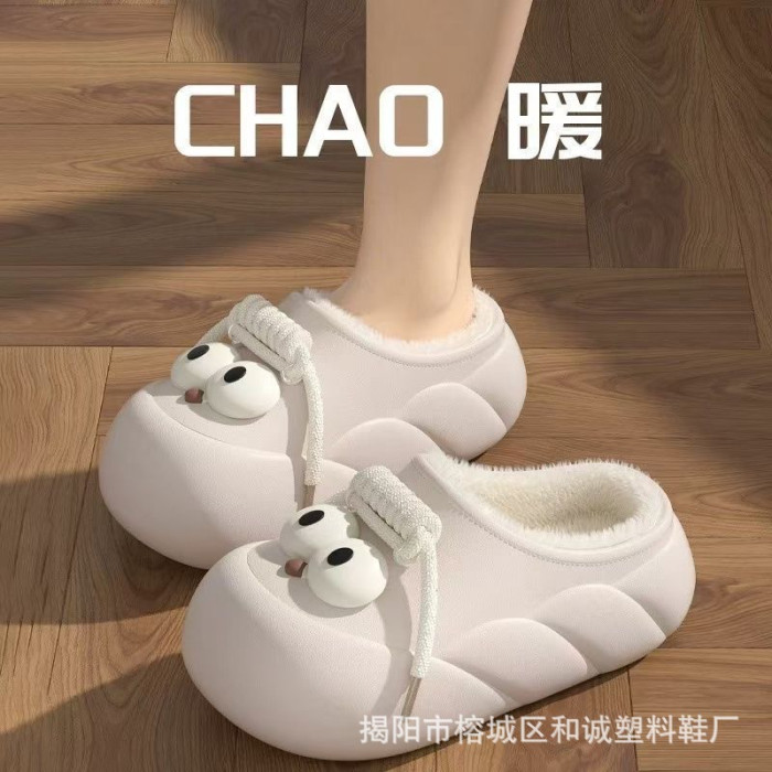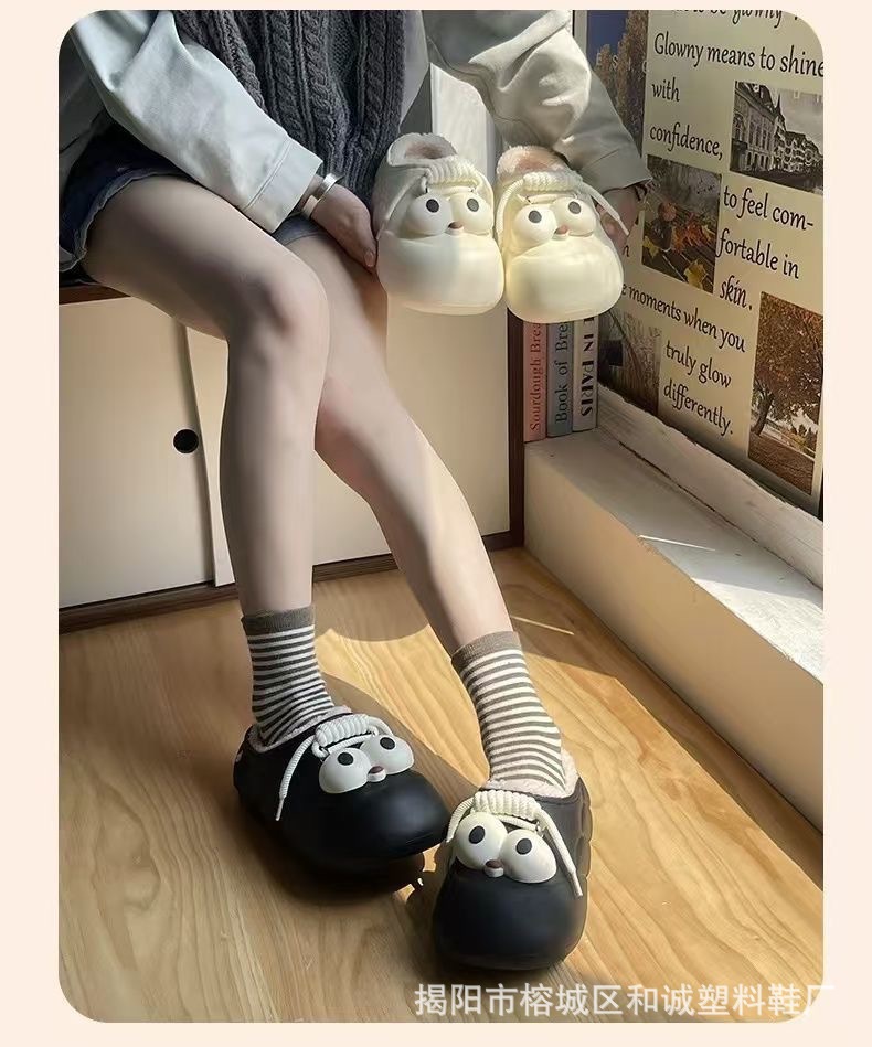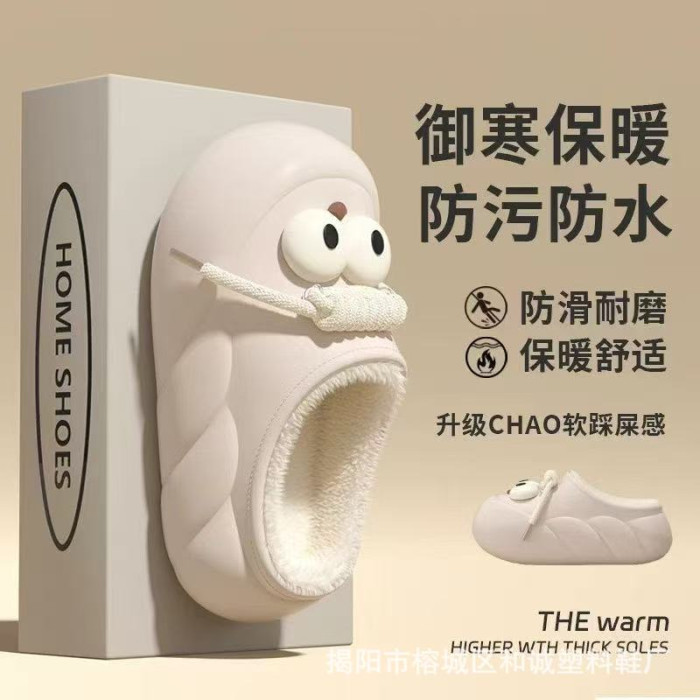2025新款半包跟厚底防水棉拖鞋女款秋冬季外穿保暖家居卡通棉鞋女