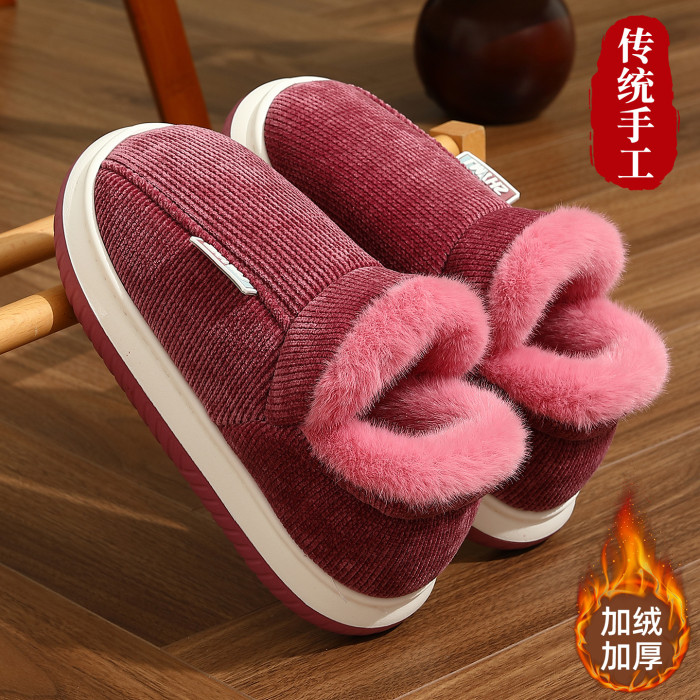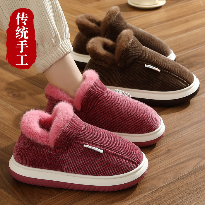 包跟棉拖鞋女居家室內冬季保暖加絨中老年防滑厚底耐磨棉拖男