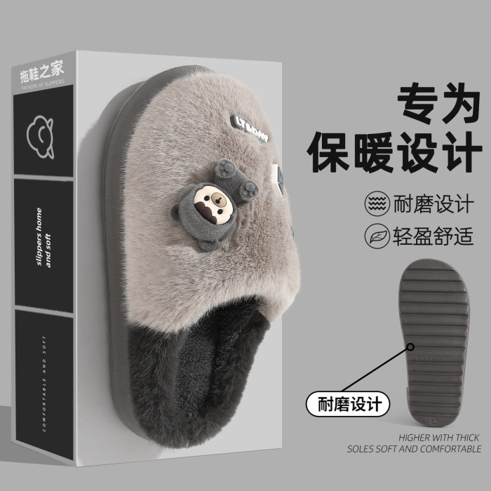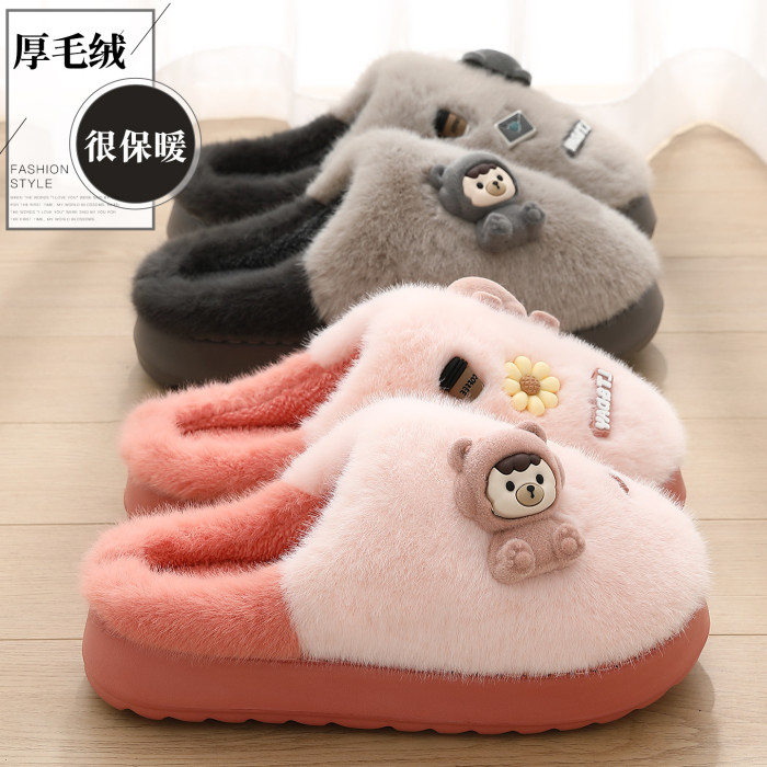 兒童卡通棉拖鞋男秋冬季親子家居室內毛絨保暖防滑毛毛拖鞋女
