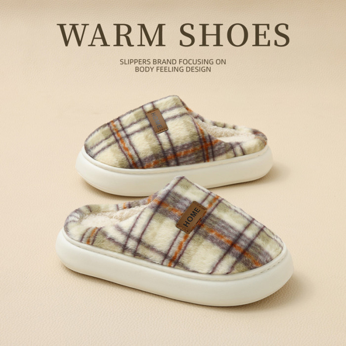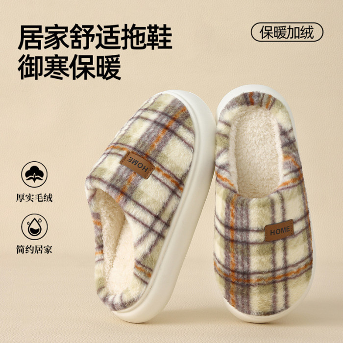 條紋包頭棉拖鞋女家居舒適保暖毛絨冬季室內軟底耐磨棉拖男士
