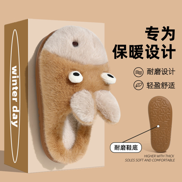 卡通棉拖鞋女冬季家居加絨保暖情侶室內可愛防滑毛毛拖鞋男士
