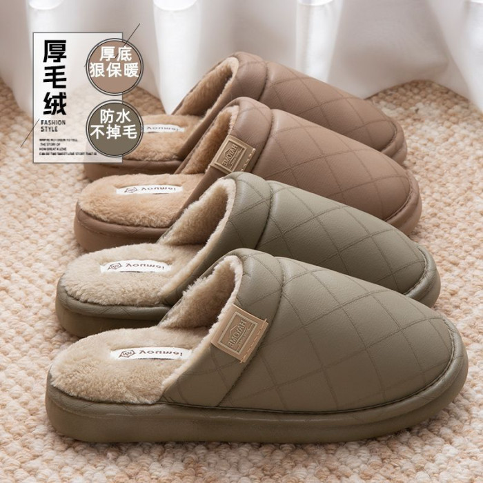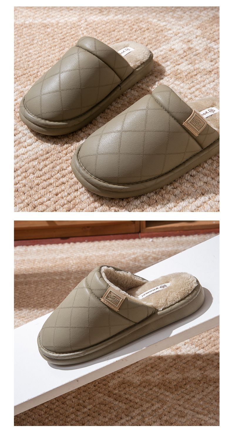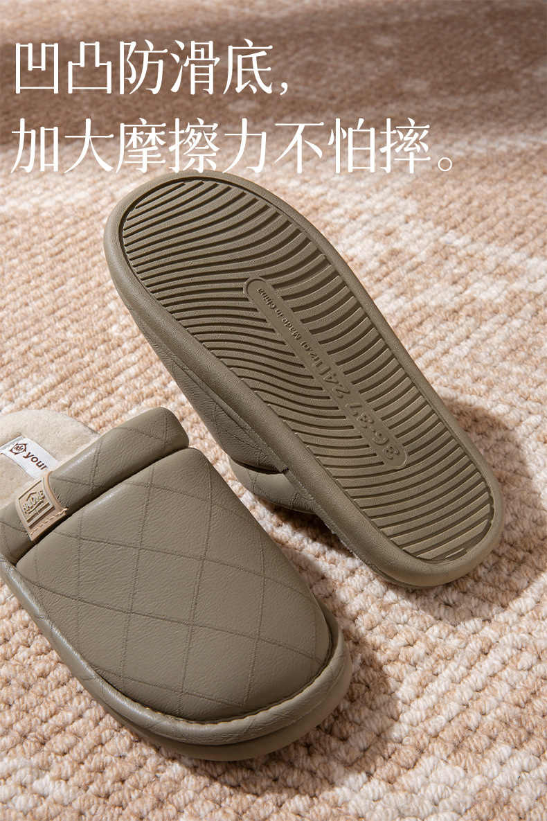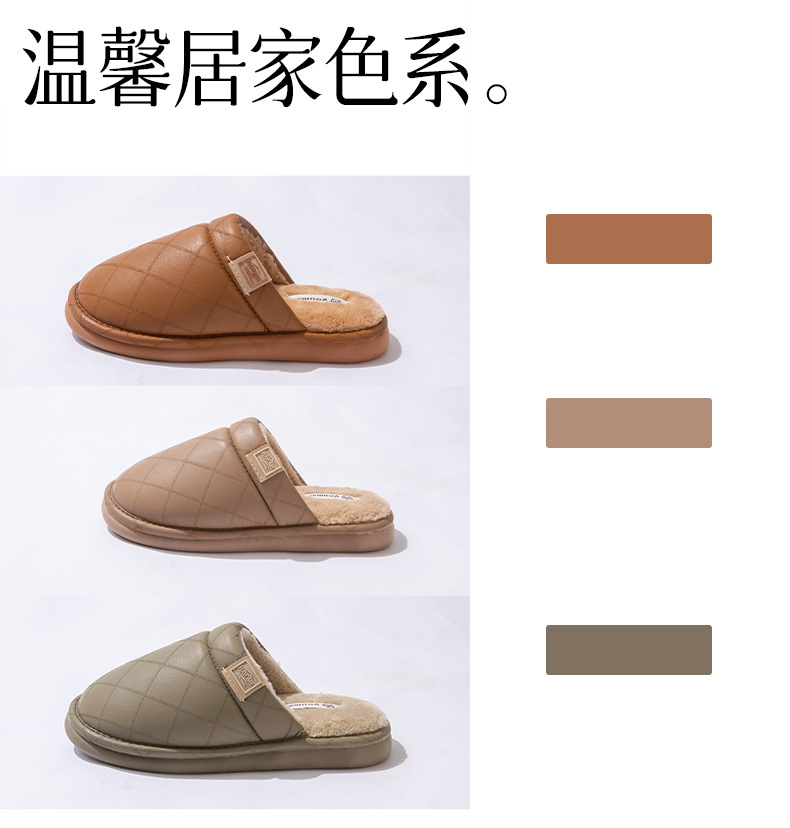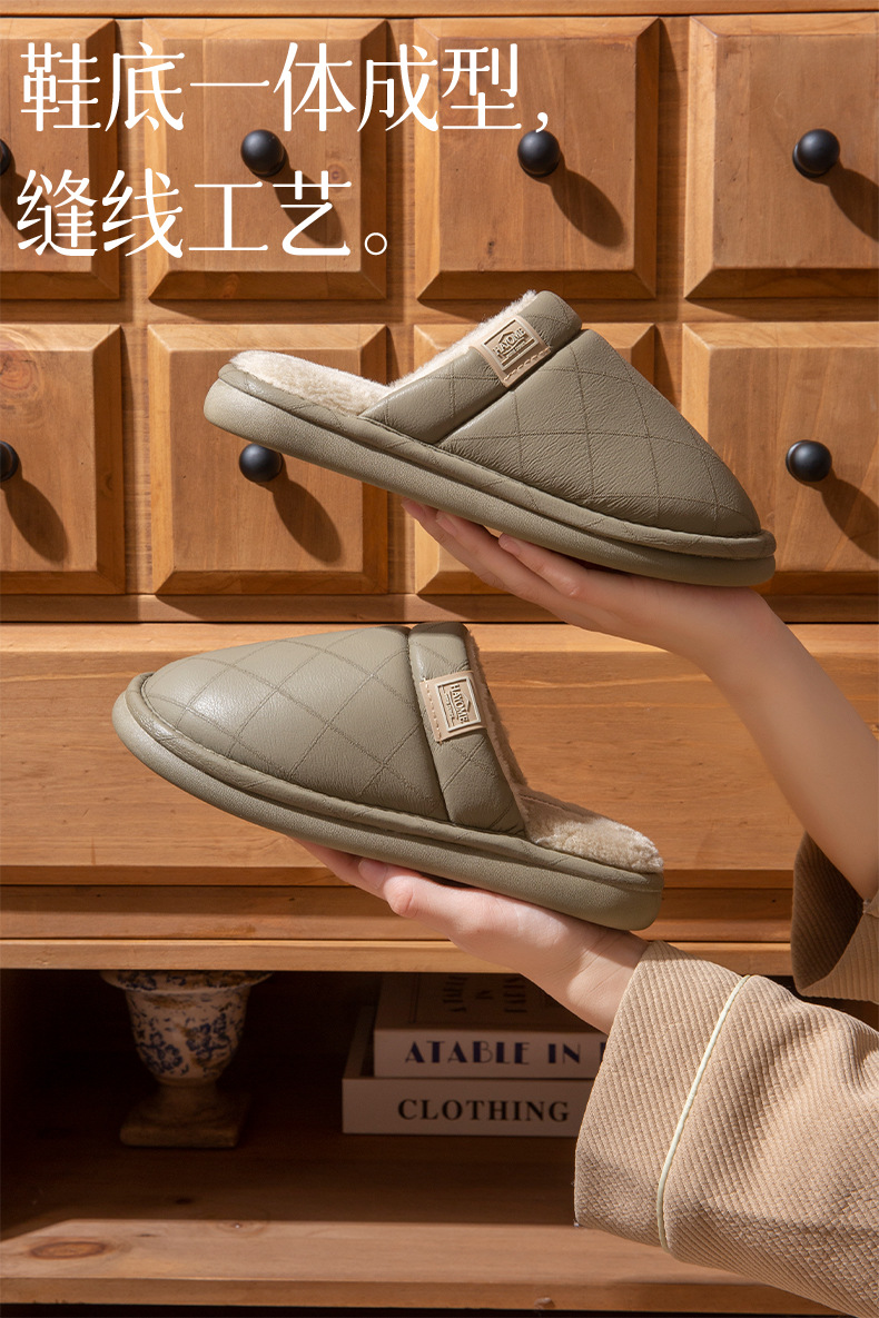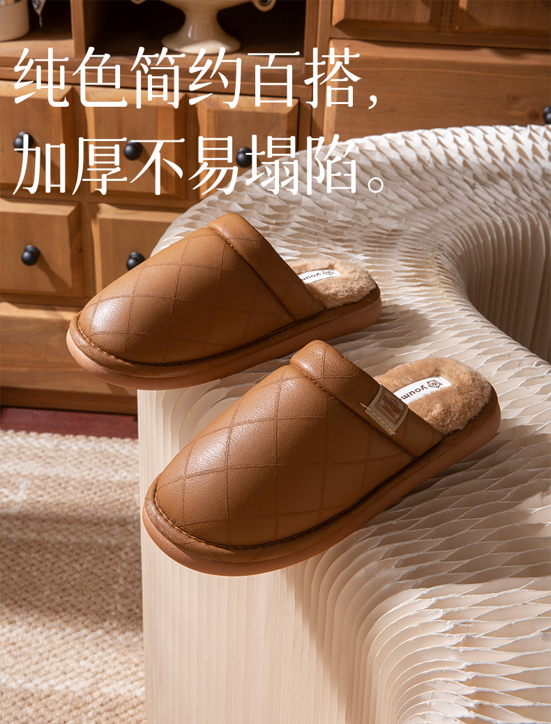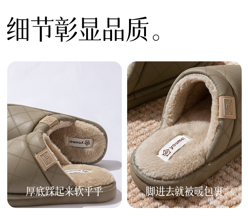 棉拖鞋女秋冬季室內家居2025新款PU防水靜音防滑保暖地板拖鞋男士