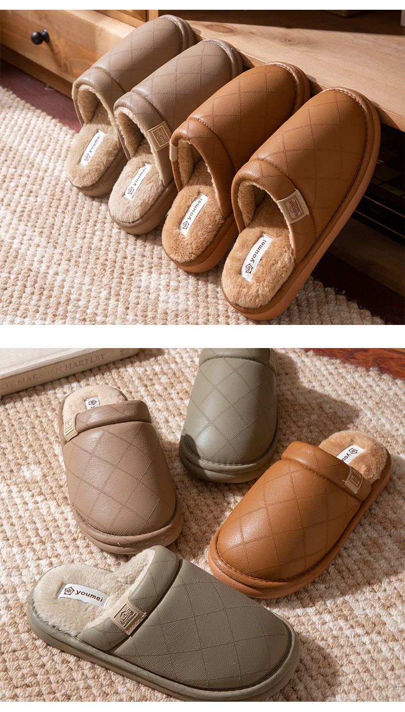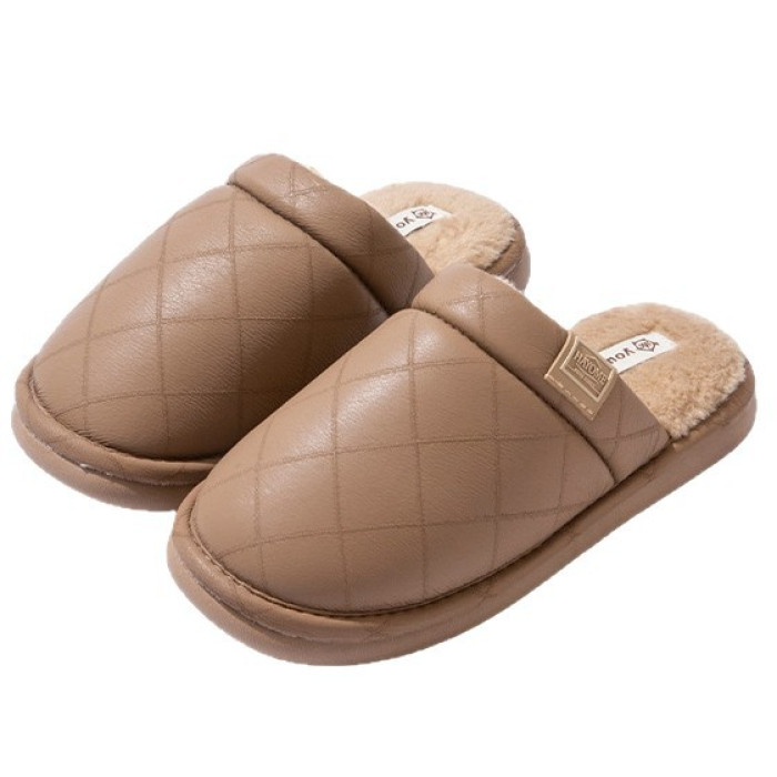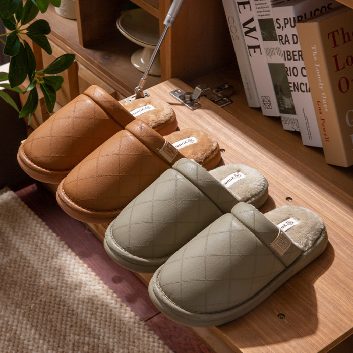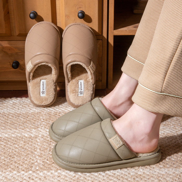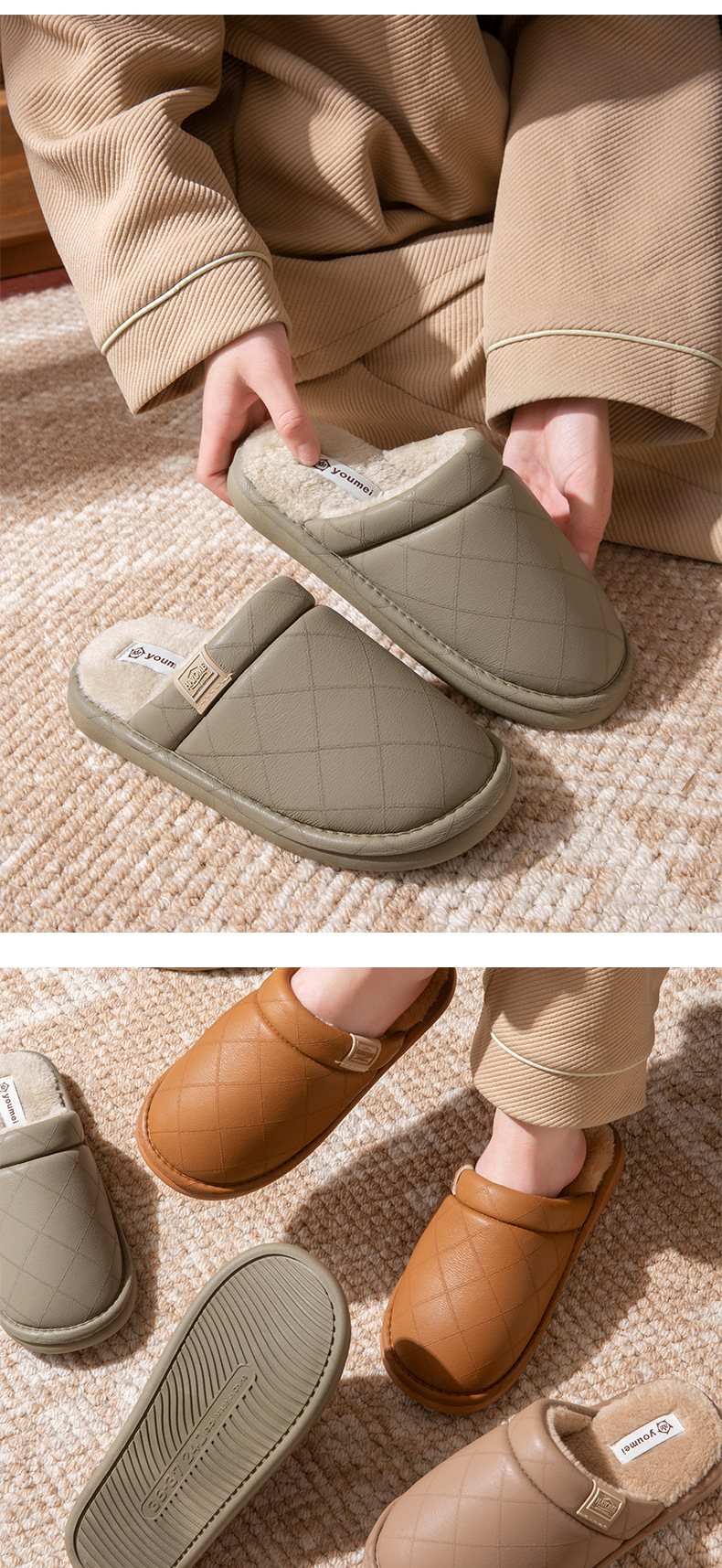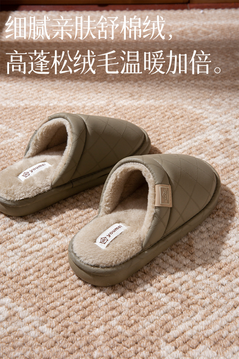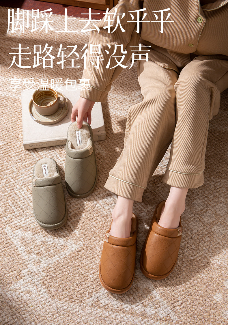棉拖鞋女秋冬季室內家居2025新款PU防水靜音防滑保暖地板拖鞋男士