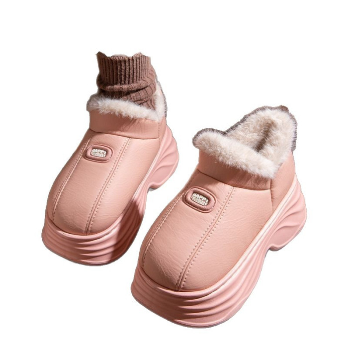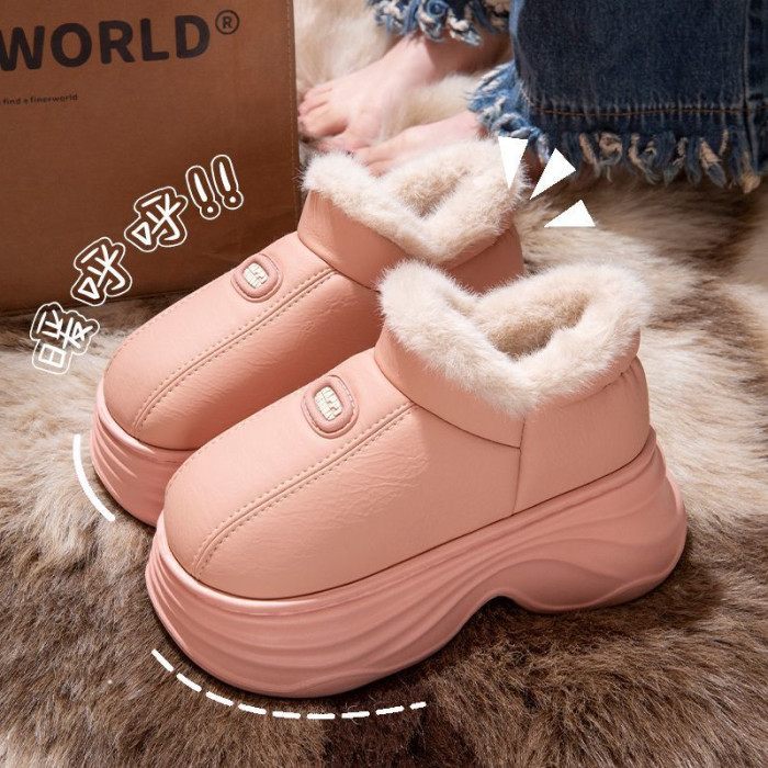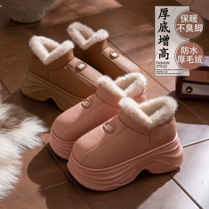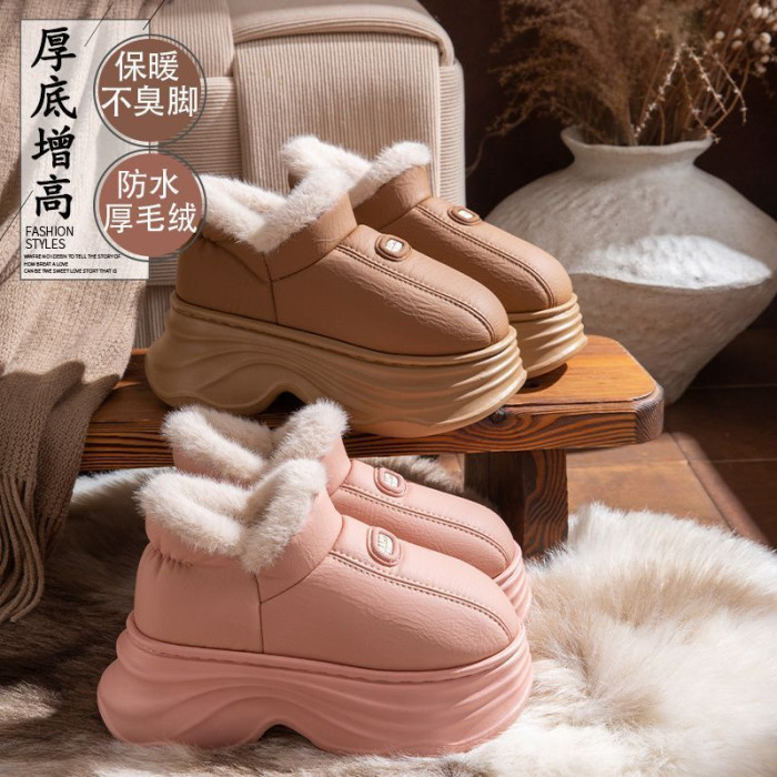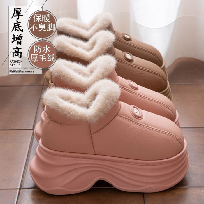 厚底增高棉拖鞋女秋冬季新款包跟保暖室內家居加絨外穿防水棉鞋女