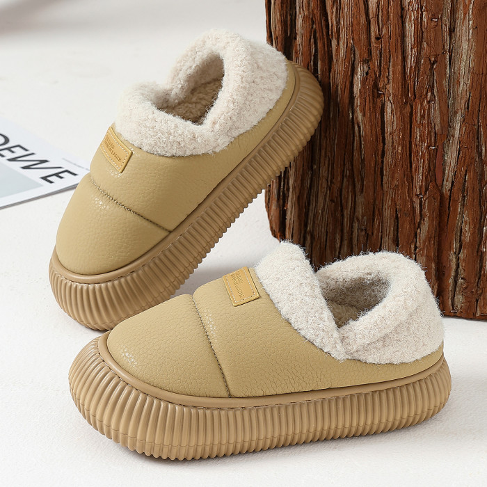 pu防水棉拖鞋女秋冬季新款包跟室內居家防滑軟底外穿棉拖女士