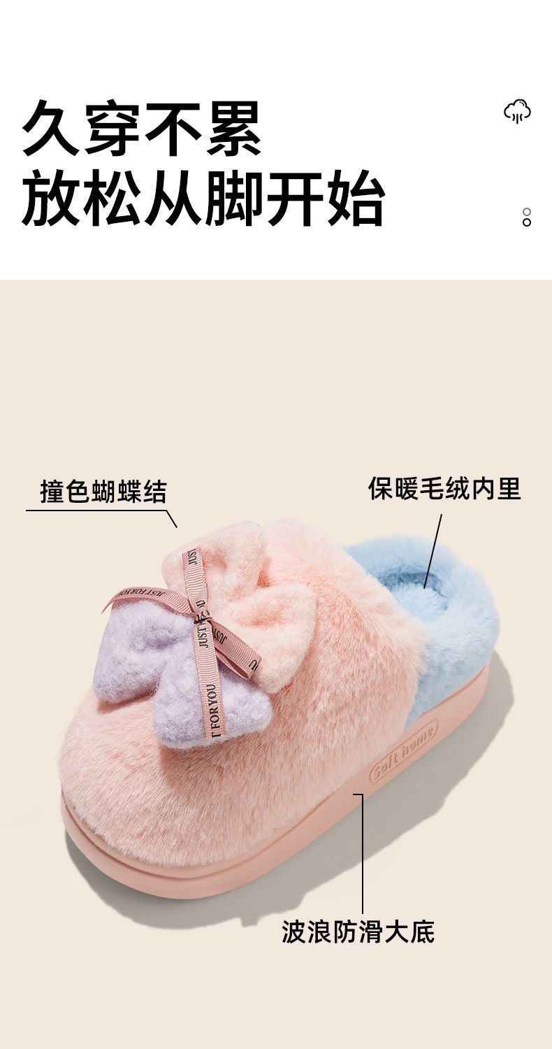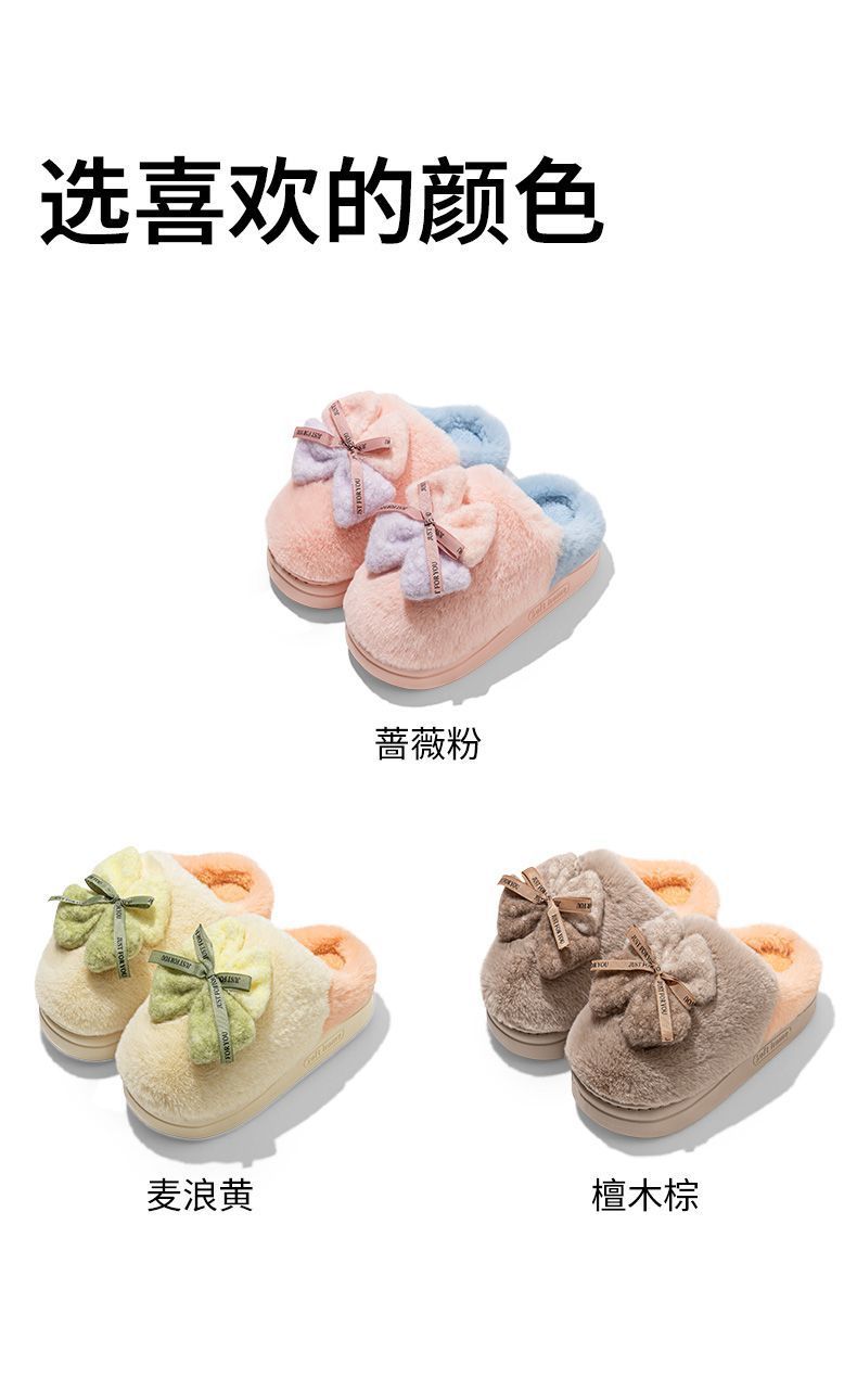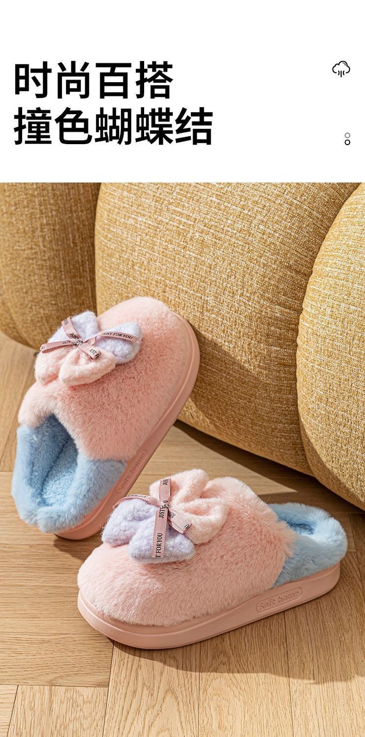 【抖音爆款】韓版厚底蝴蝶結毛茸茸棉拖鞋2025加絨厚底居家保暖