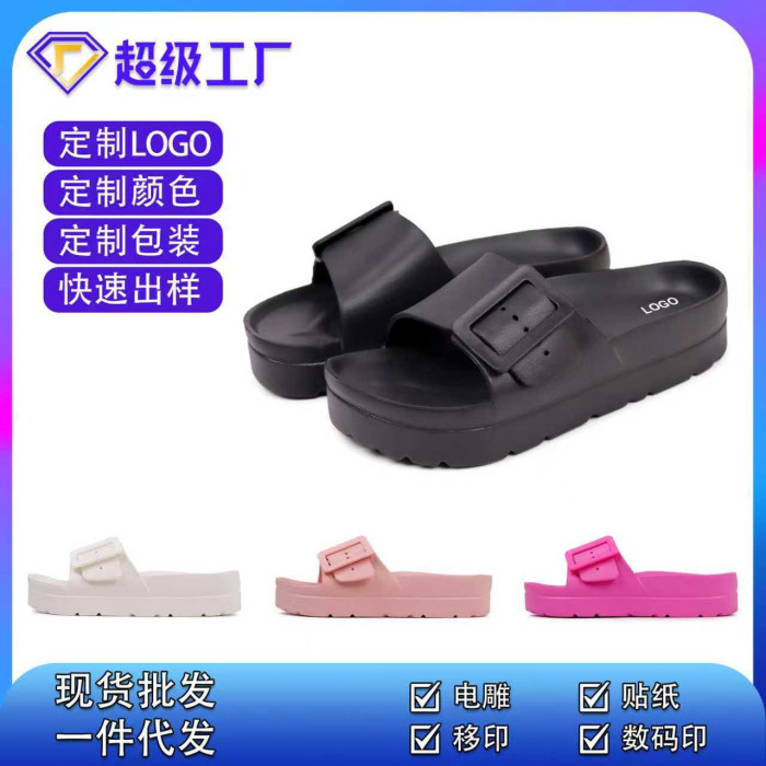 夏季涼拖鞋新款大釦子拖鞋厚底踩屎感家居潮流舒適軟鞋子
