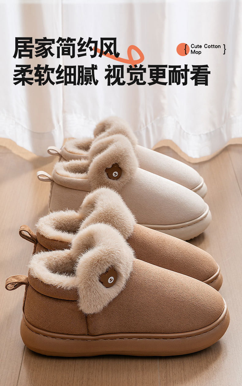 高幫棉拖鞋女款2025冬季新款室內家居防滑保暖厚底毛毛絨棉鞋外穿