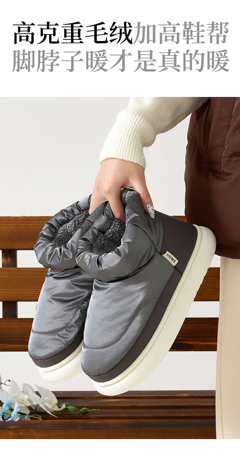 羽絨布防水保暖拖鞋秋冬棉拖鞋軟底女包跟棉鞋厚底居家用加絨棉鞋