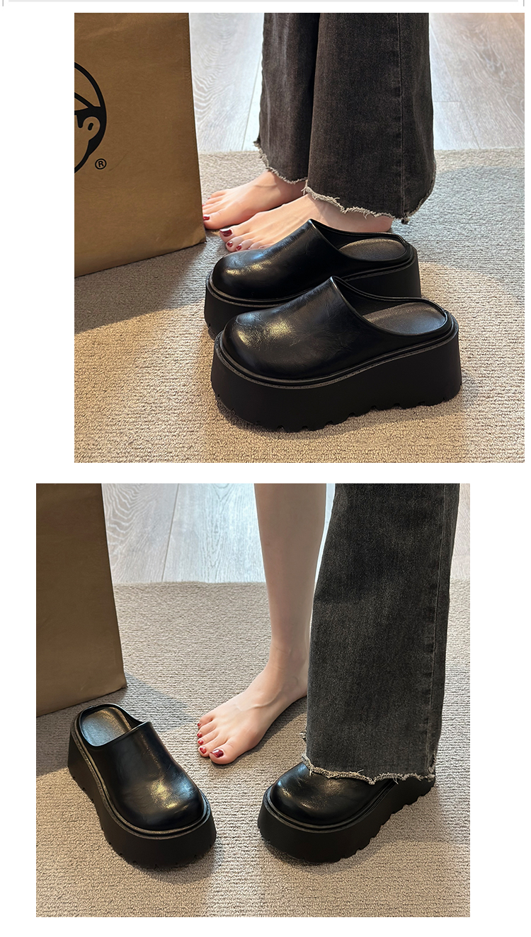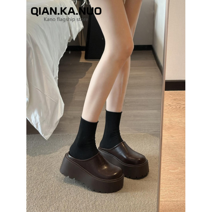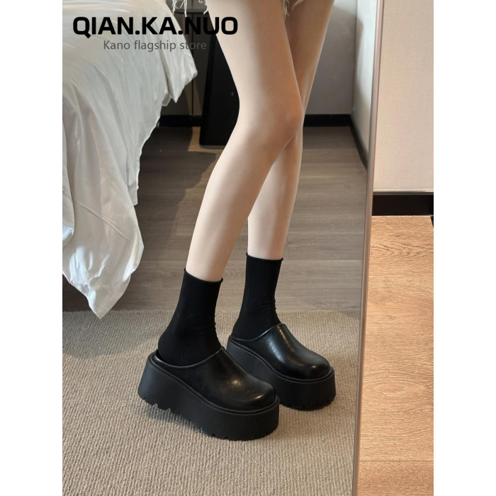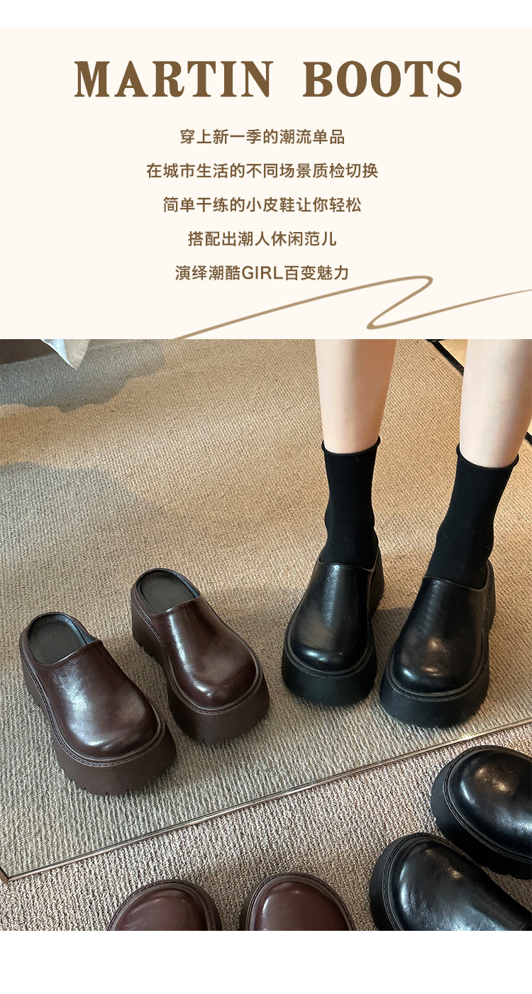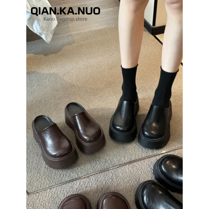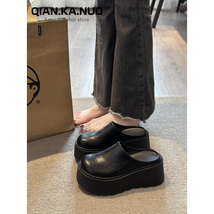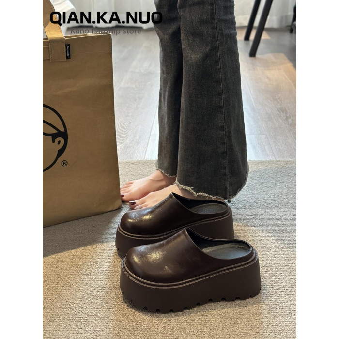 包頭半拖鞋女外穿2025春季新款厚底懶人穆勒鞋增高矮個子勃肯單鞋