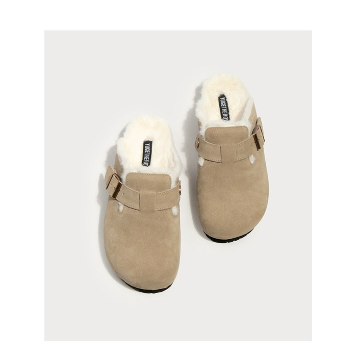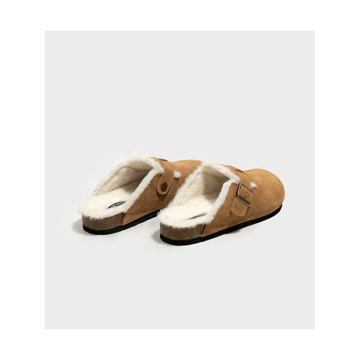 勃肯鞋女加絨包頭半拖鞋外穿2025新款秋冬季懶人博肯鞋毛毛棉拖鞋