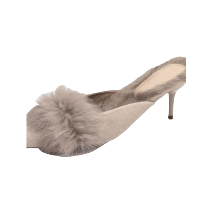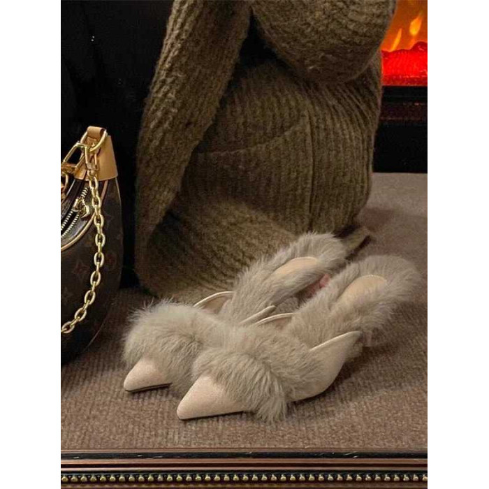 穆勒鞋春秋細跟毛毛拖鞋女外穿包頭高跟鞋加絨保暖法式小跟鞋新款
