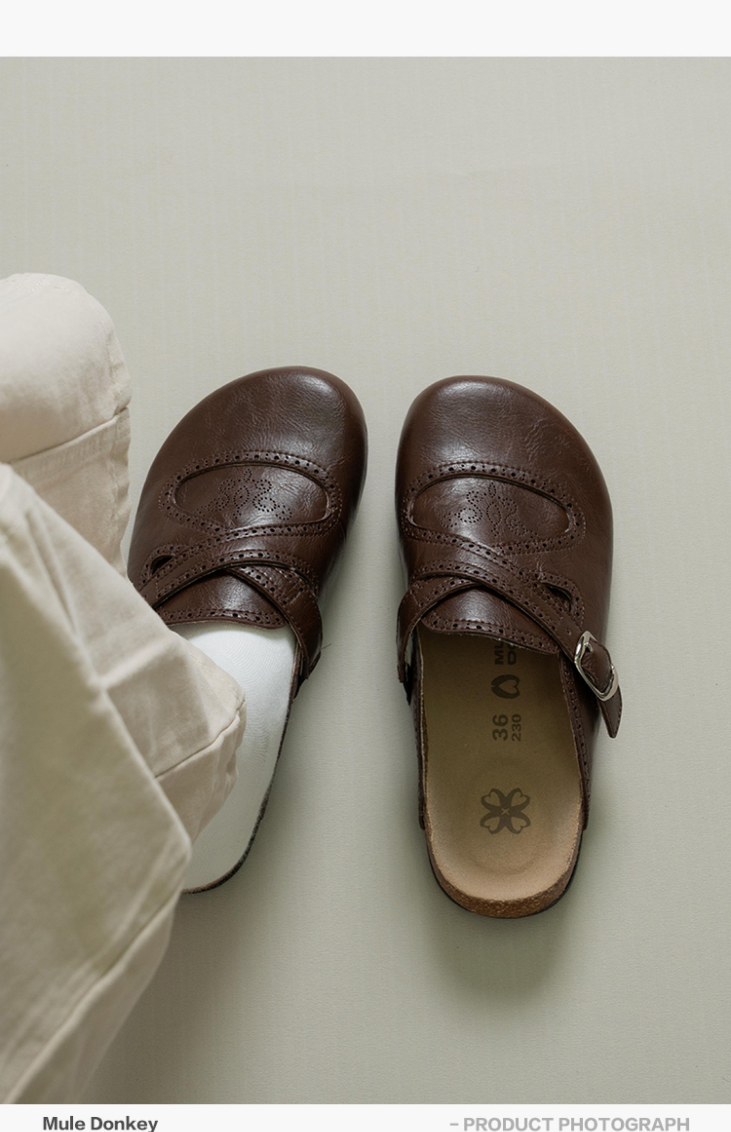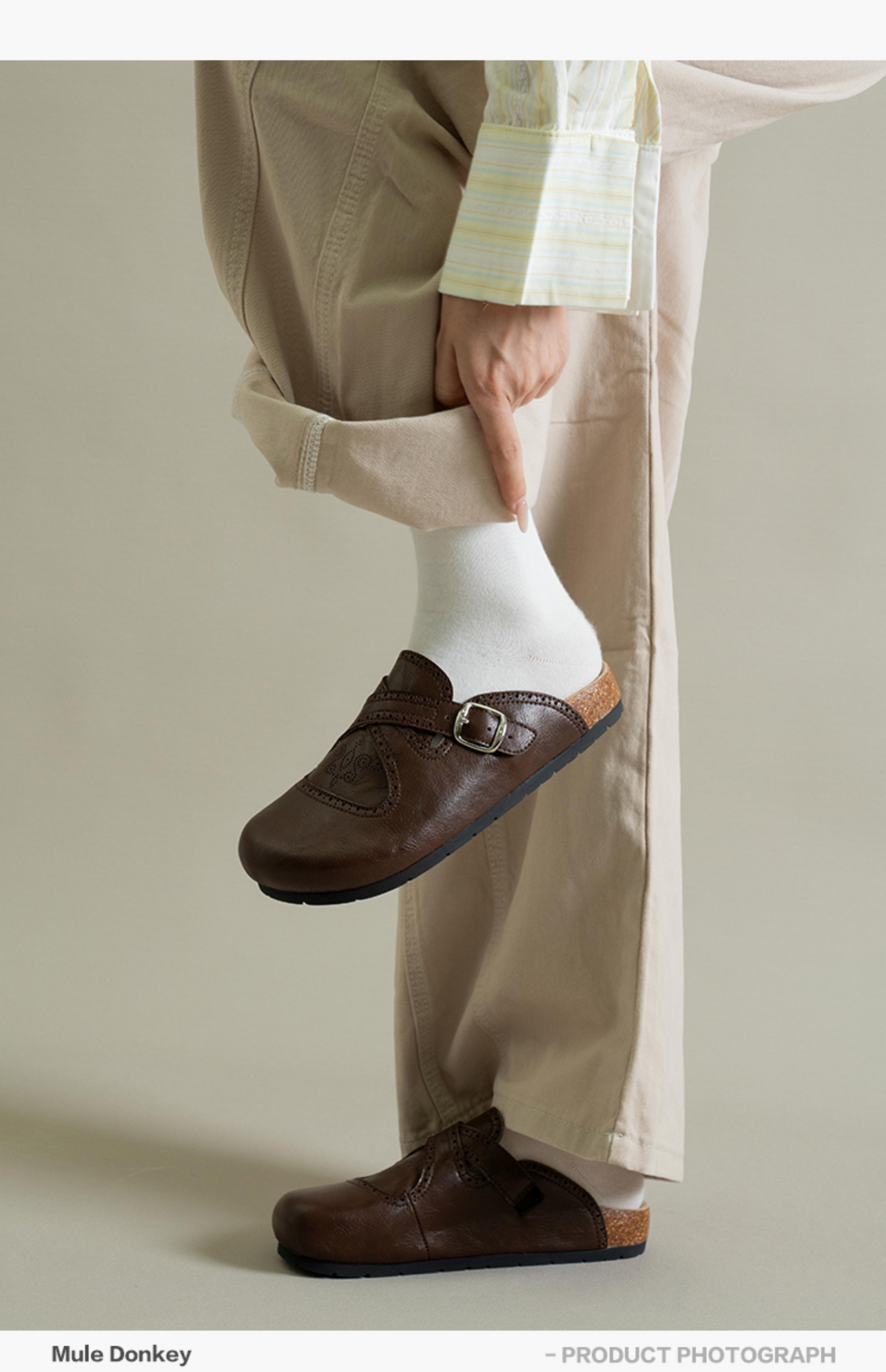 厚底皮面勃肯鞋包頭半拖鞋女外穿2025新款秋夏一腳蹬穆勒博肯單鞋