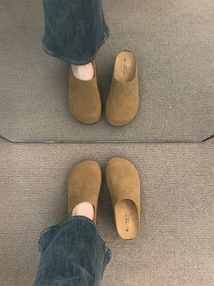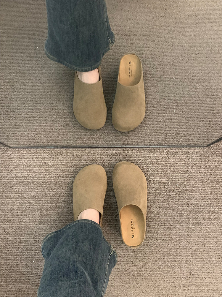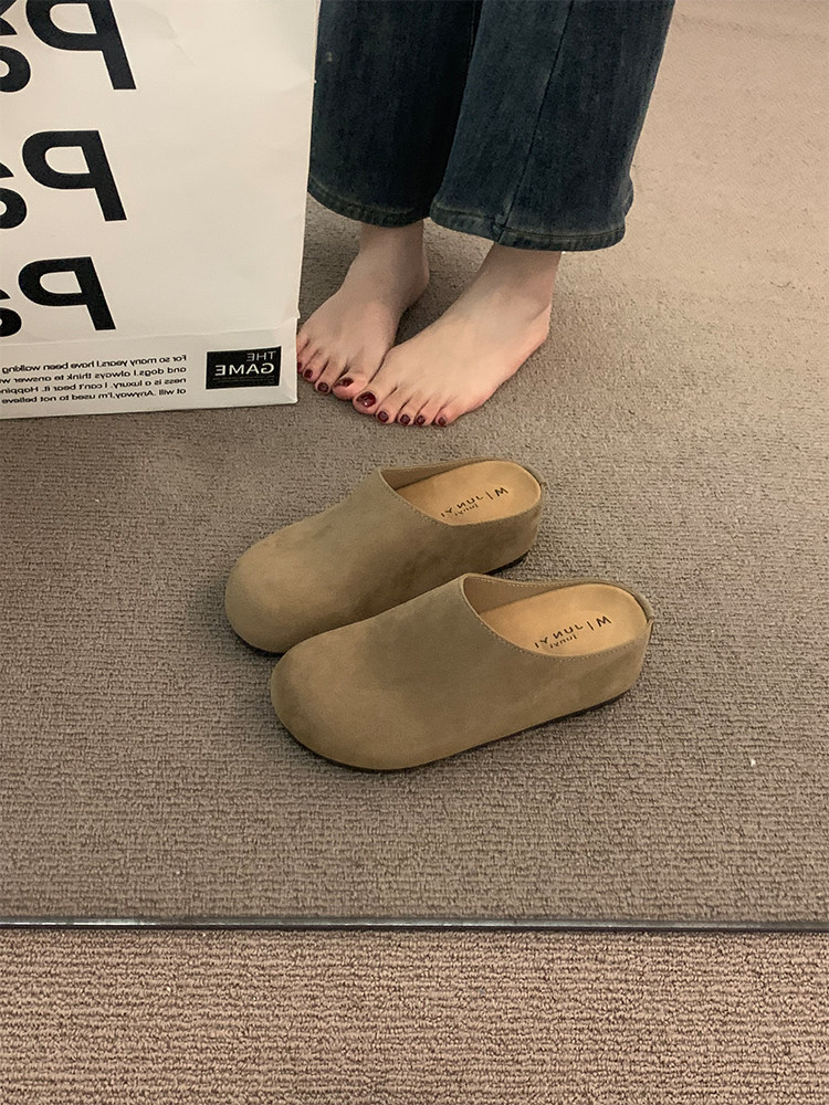 厚底內增高勃肯鞋2025新款春夏一腳蹬醜萌包頭半拖鞋女外穿博肯鞋