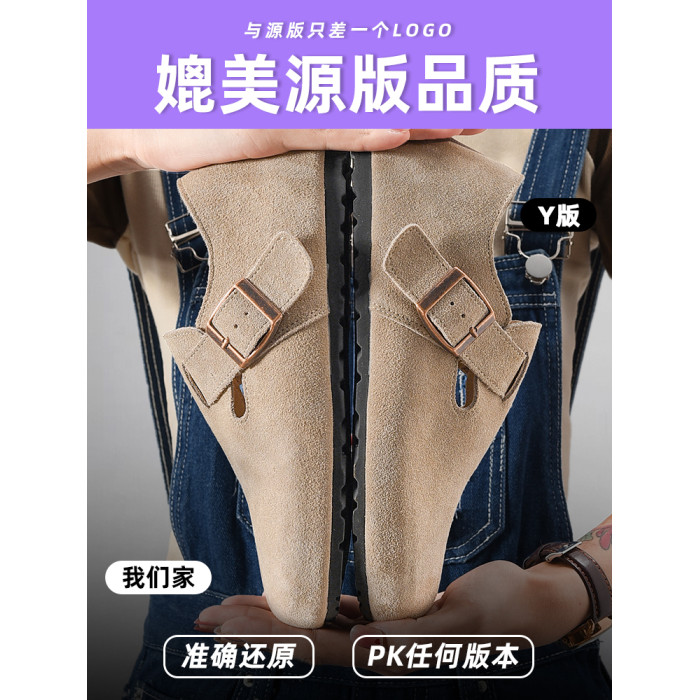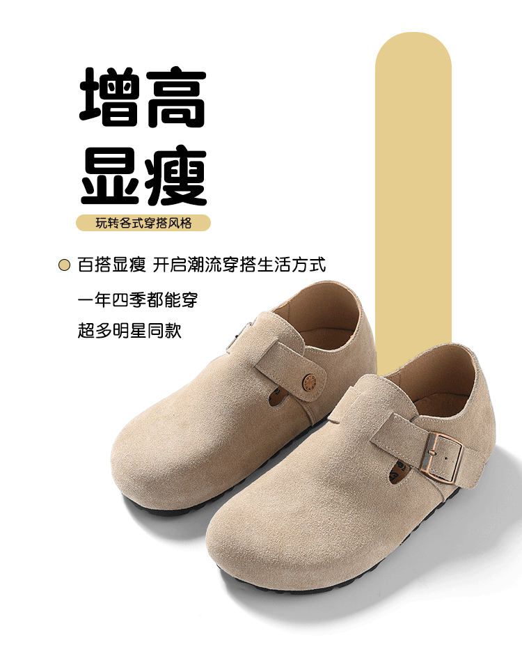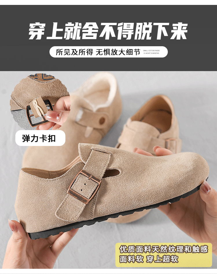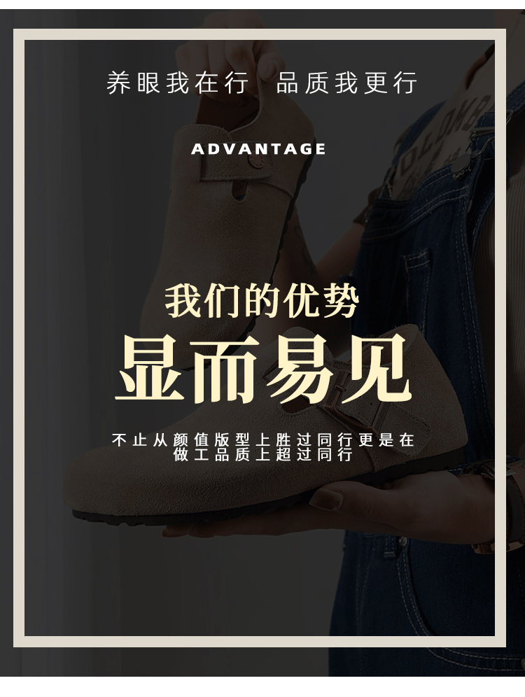 三喜同款全包勃肯鞋女2023冬季新款加絨厚底增高外穿釣魚博肯男潮